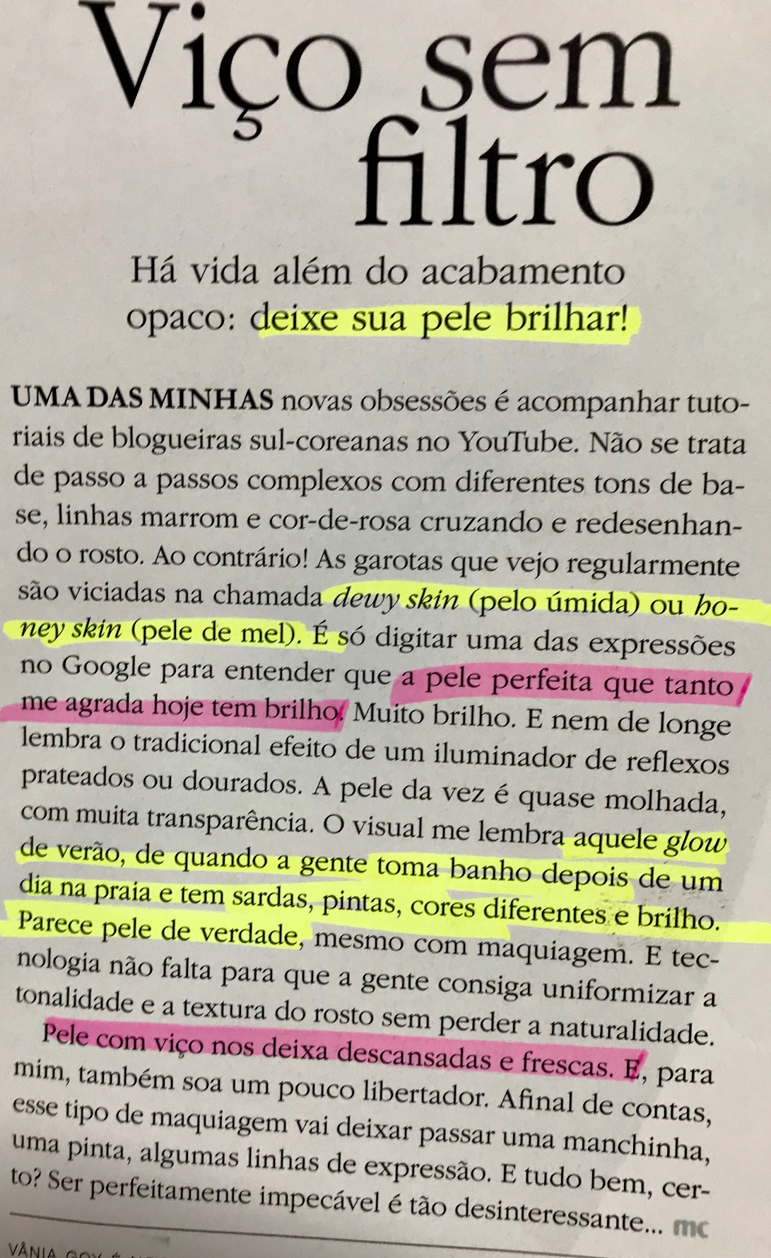 Essa matéria é da Marie Claire de janeiro/2018. A idéia é você ter essa cara jovem e fresquinha, de quem acabou de sair do banho. Nas passarelas dos desfiles internacionais, algumas produções inclusive adicionaram sardas nas modelos! Rsrs