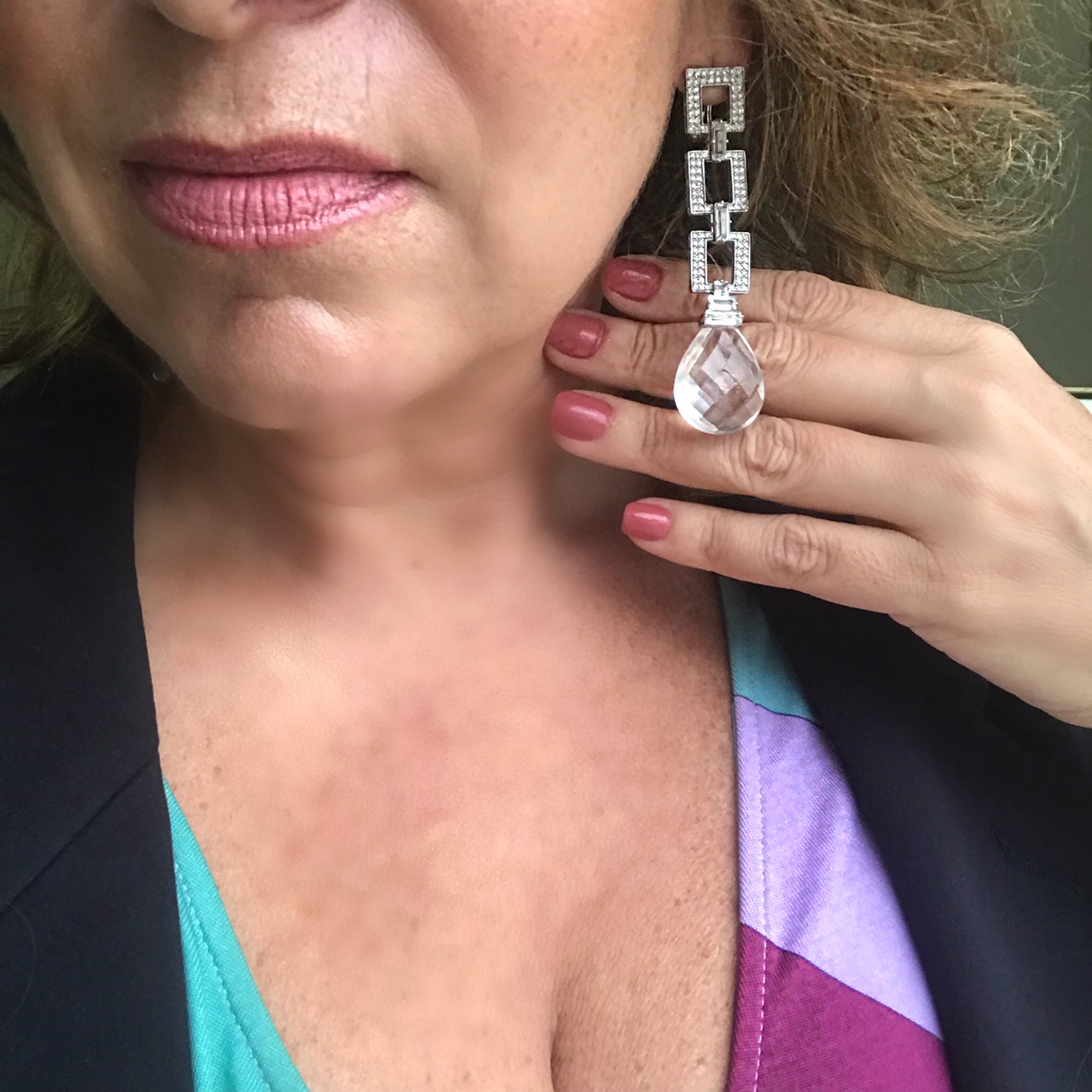 O programa ontem foi jantar com casal de amigos queridos em restaurante. Embora seja verão, estamos em meio a uma frente fria que fez as temperaturas caírem um pouco. Mesmo assim, eu quis cores! E no meio de tantas cores, uma maquiagem sem cores e mais suave seria o ideal!