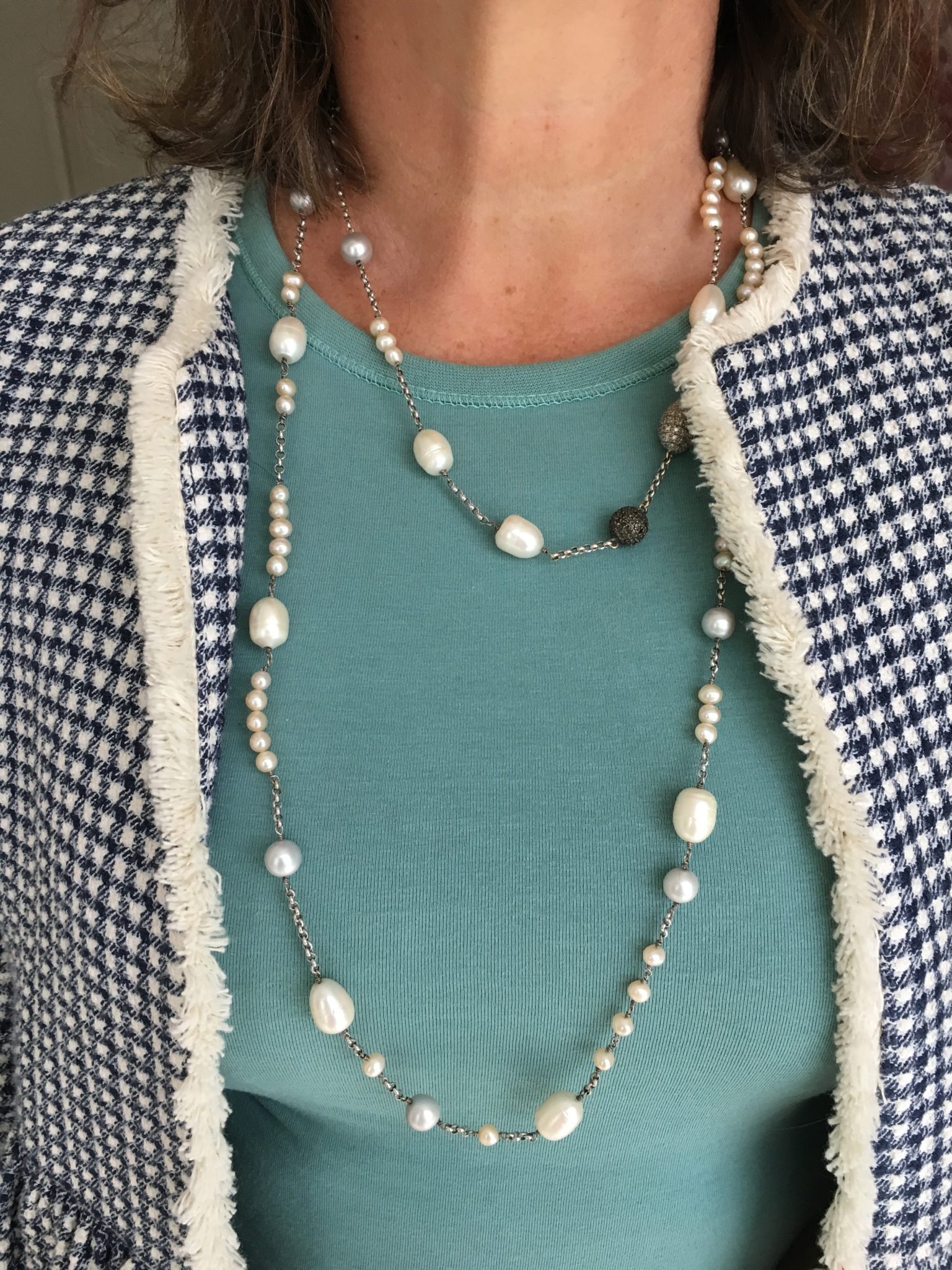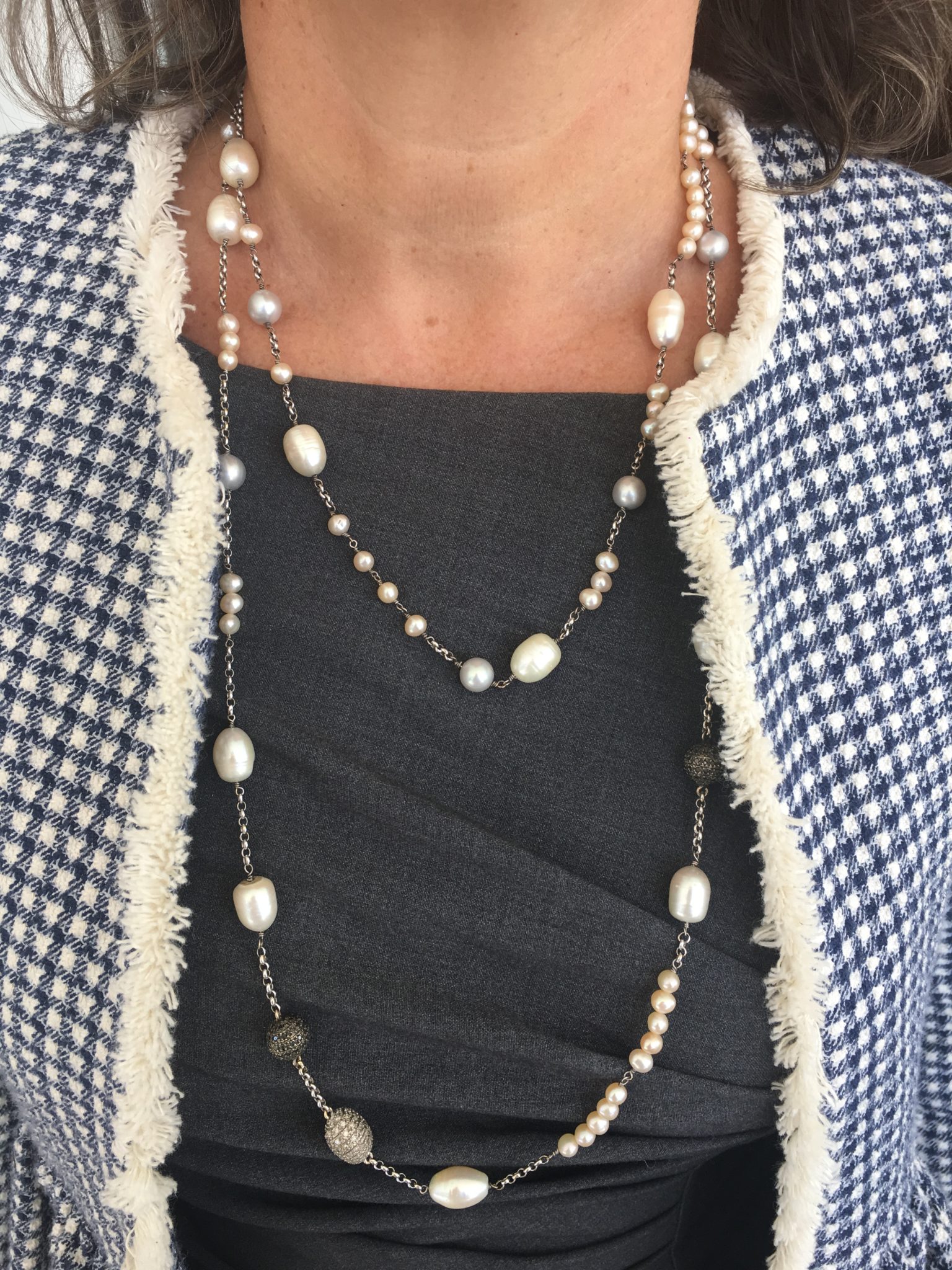 Esse fio longo é super versátil! Pode ser usado longuíssimo, em 2 ou 3 voltas, enrolado como pulseira, misturado com bijoux, enfim: são muitas possibilidades!
