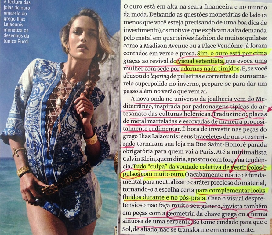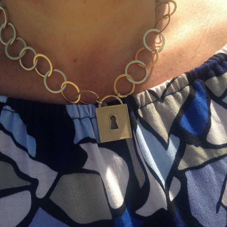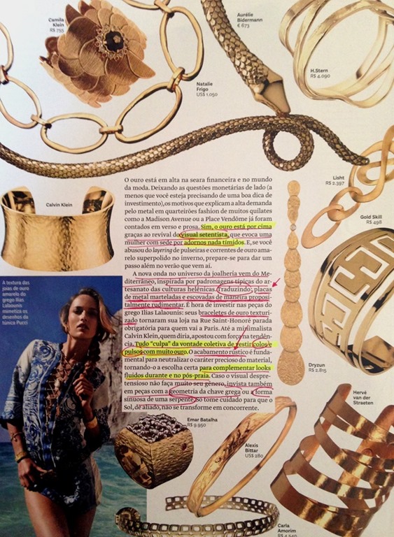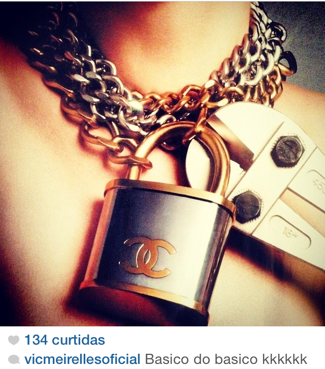 Esse contraste de muito ouro amarelo com azul na praia estava na VOGUE BRASIL, e o cadeado está everywhere – tendência – de LOUIS VUITTON a CHANEL –