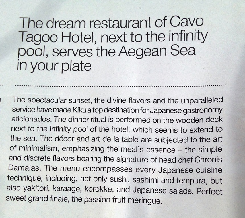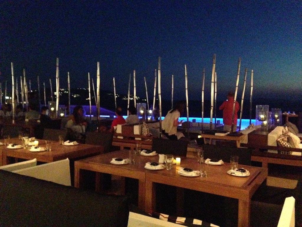 O restaurante tem um lounge lindo para ver o por-do-sol ( sempre ele !!! Sol ) á beira da piscina. No ambiente das mesas, o japa servido é super gourmet! Polegar para cima