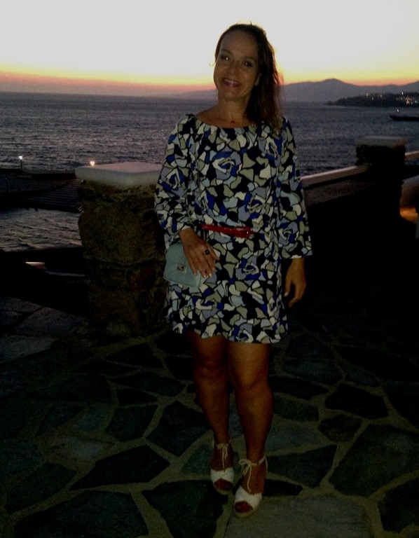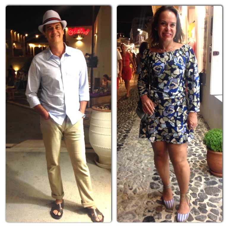 Abaixo, o mesmo vestidinho para jantar em Santorini / novos complementos; outras joias