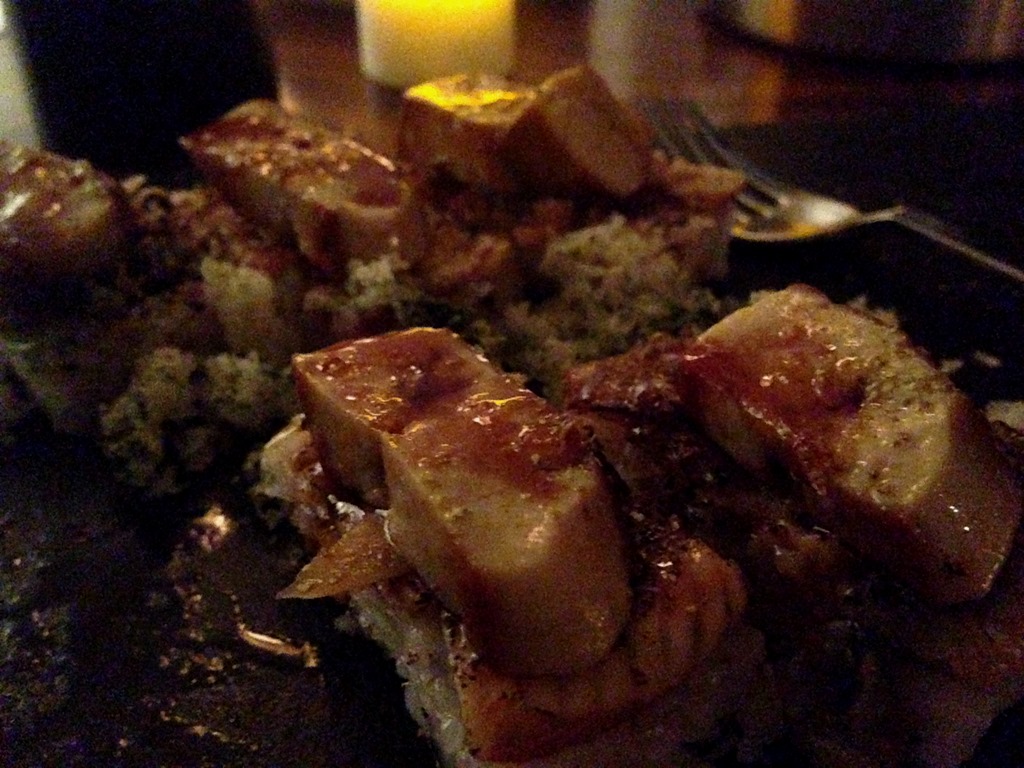 sushi com foie gras, sea-bass, camarao picante , etc etc