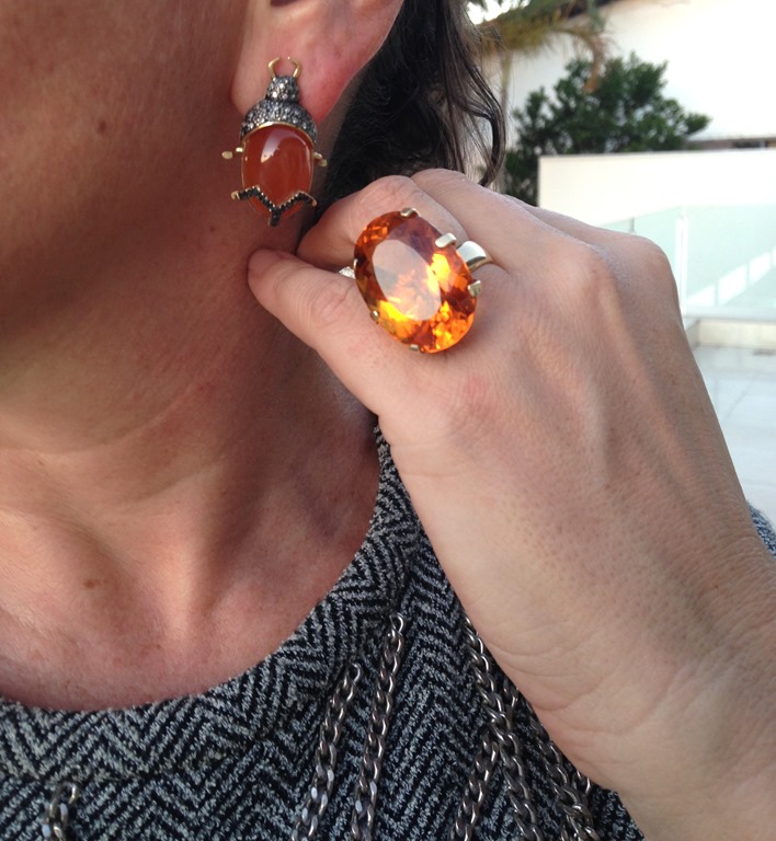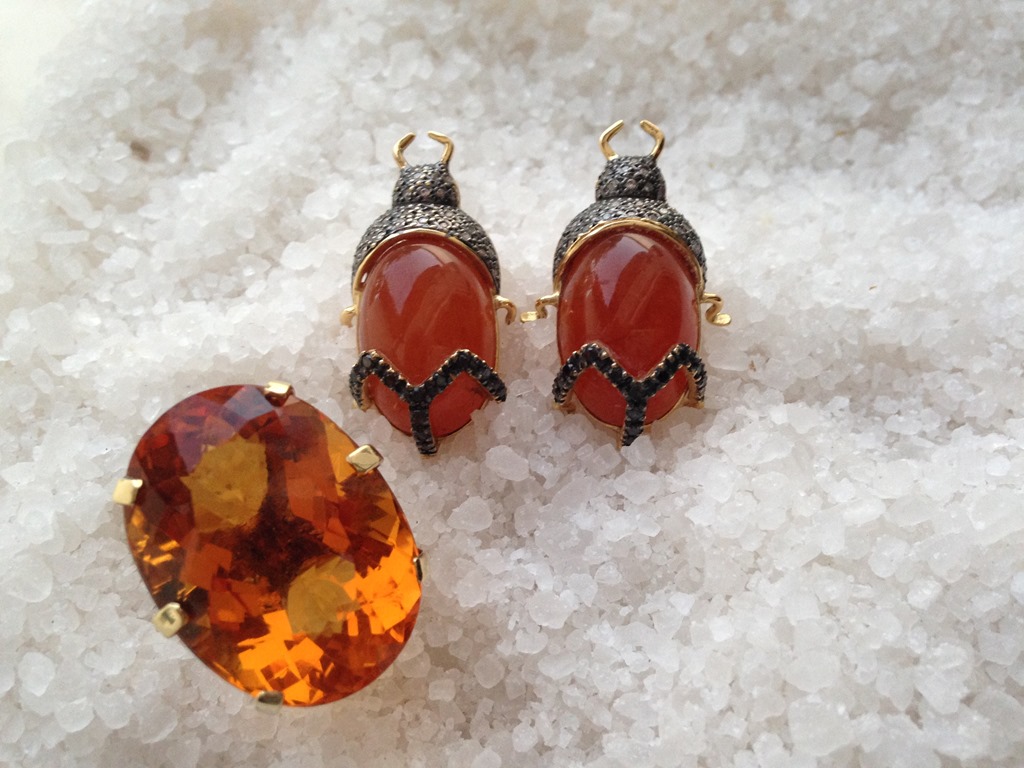 brinco besouro em rodocrossita e brilhantes ——– 10 x 600,00 = 6000,00