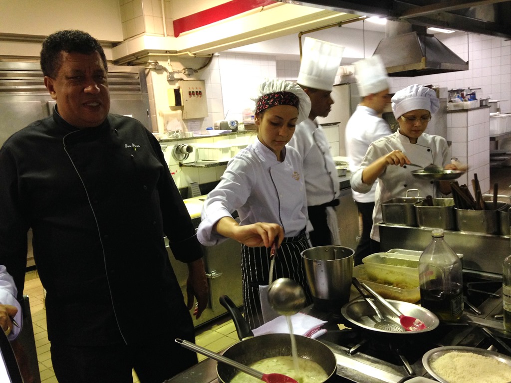 Afinal, a aula do chef IVO ( nosso maior nome – dispensa apresentações ) acontece dentro da cozinha do próprio restaurante em horário de serviço normal. Assim, além de receber as informações da aula , você ainda participa da rotina do serviço e vê a montagem de vários pratos, com o funcionamento frenético do local, etc etc