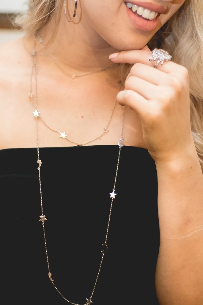 Fio longo lua e estrela — 10 x R$180,00 = R$1800,00