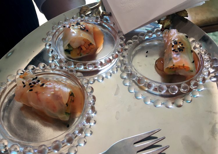 Na sequência, vários pratinhos foram servidos individualmente pelos garçons: