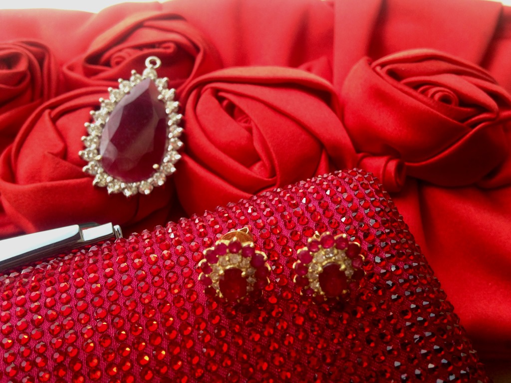 brinco e pingente em rubis JOIAS PD , sobre as clutches maravilhosas Valentino e Isla. ![]()