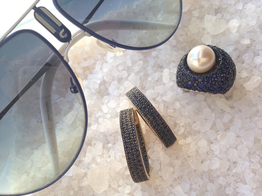 Para uma sexta-feira grande , comecei de sapatilha onça e jóias em safiras.