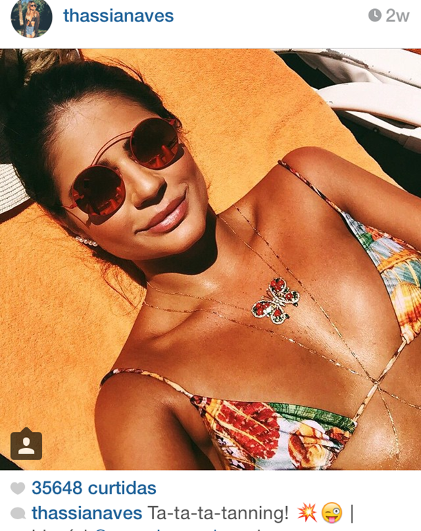 Borboletas também no verão do Brasil – vi Thassia Naves com um colar lindo em pleno verão da Bahia – vale a repostagem!