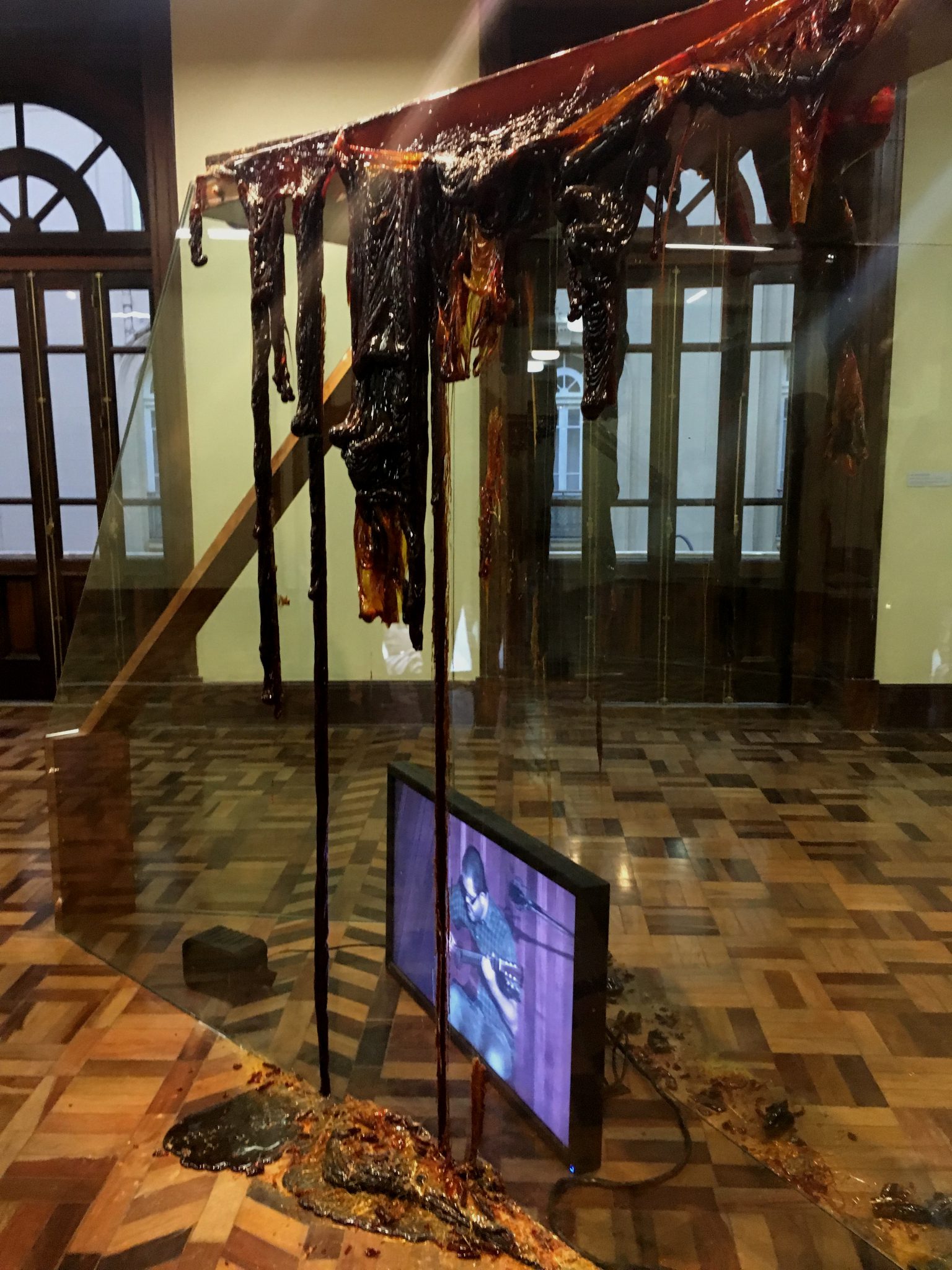 Lá mesmo na exposição, ficou marcada uma visita guiada pela equipe da galeria ( Flavia Albuquerque e Luiza ) à exposição do mesmo Nuno Ramos no CCBB que estava se despedindo de BH. Marcamos encontro no subsolo do belíssimo prédio da Praça da Liberdade. A própósito, o Café com Letras é um lugar que além de charmoso, serve uma comida deliciosa ao som de jazz ao vivo a partir das 20 hs.