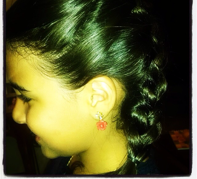 O brinco dela é super versátil. Pode ser usado com ou sem a rosinha cor-de-rosa.