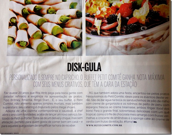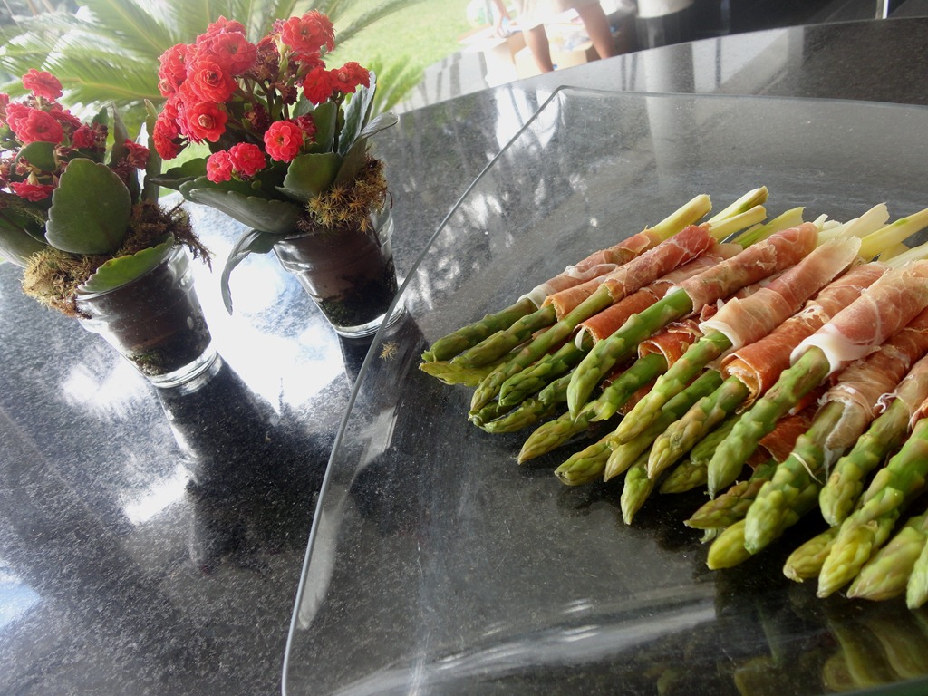 Receitinha nova : idéia da VOGUE RG também – aspargos envoltos em frios – o meu , em parma, salpicado de Flor de Sal com Funghi e servi na hora com azeite trufado. (esse site www.petitcomite.com.br tem fotos inspiradoras e diquinhas ótimas de como servir em mini-porções , coisa que amo fazer ! )