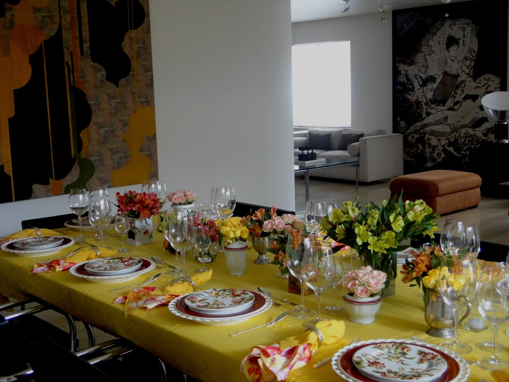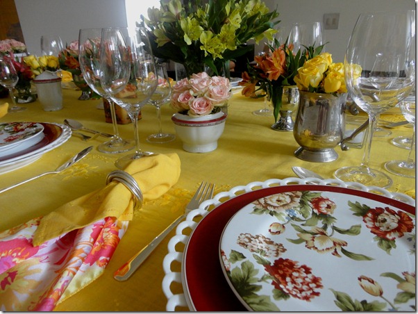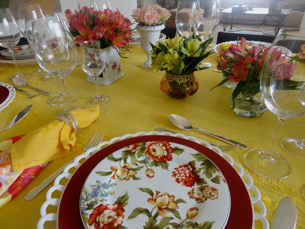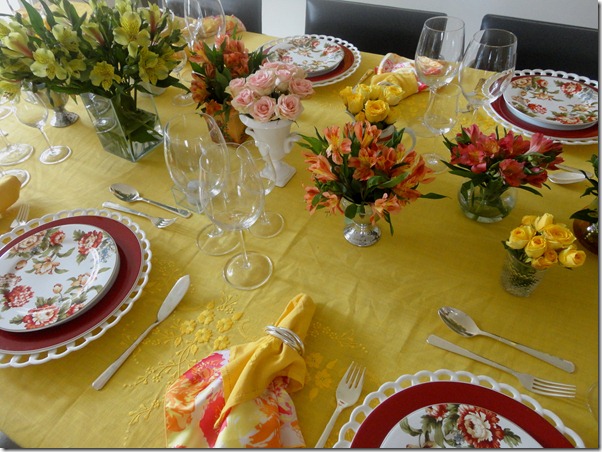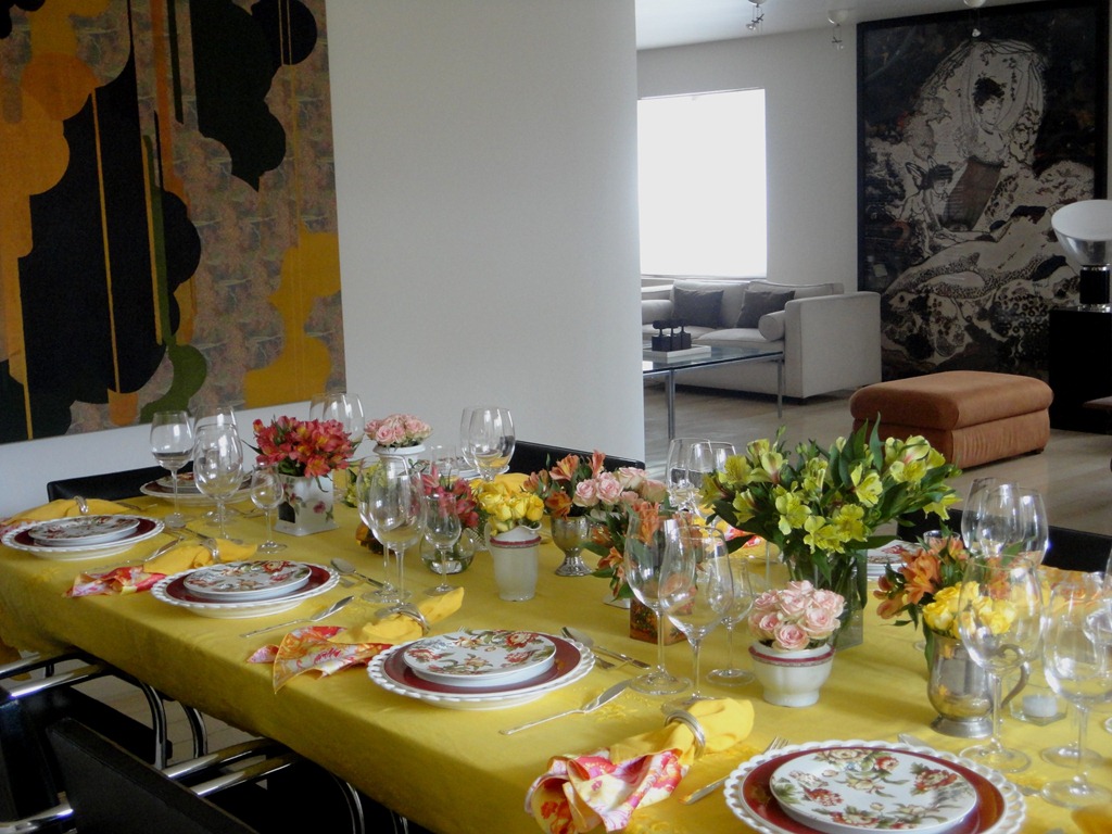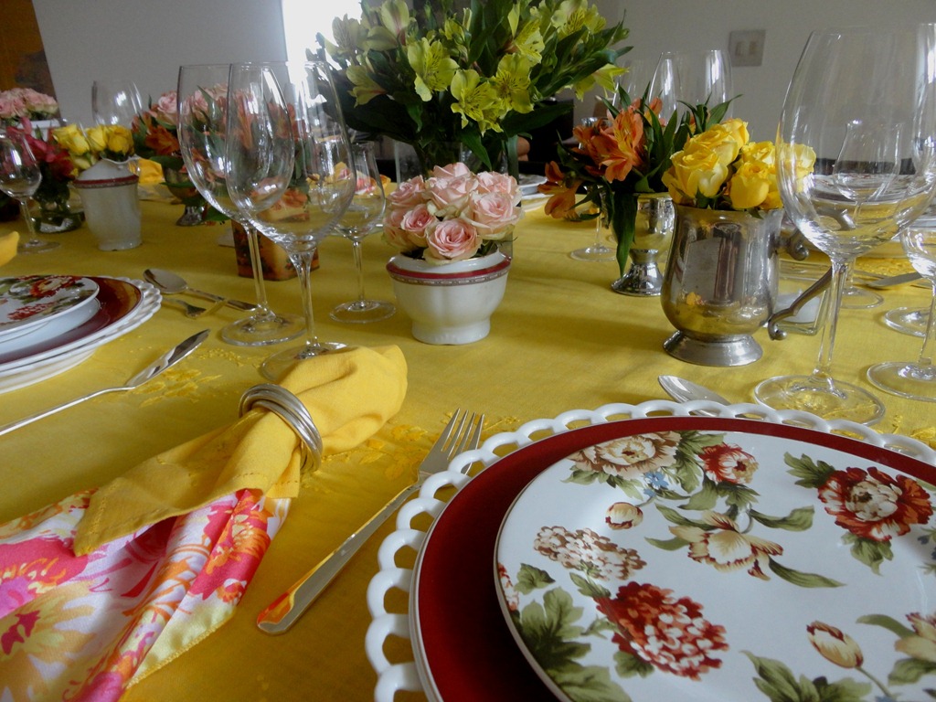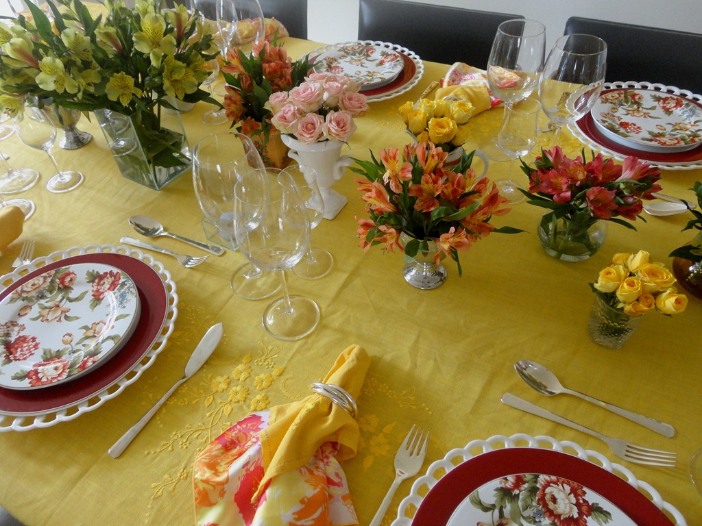 Essa imagem da VOGUE RG antiiiiga estava guardada na minha “pasta de inspirações” e resolvi reproduzir os tons na mesa, que achei muito lindos! Agrupei as flores também em mini vasos que já tinha , uma coisa bem movimentada, outra dica da VOGUE RG.