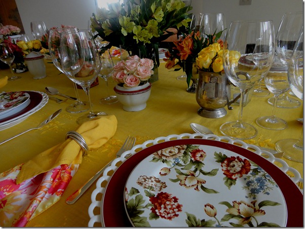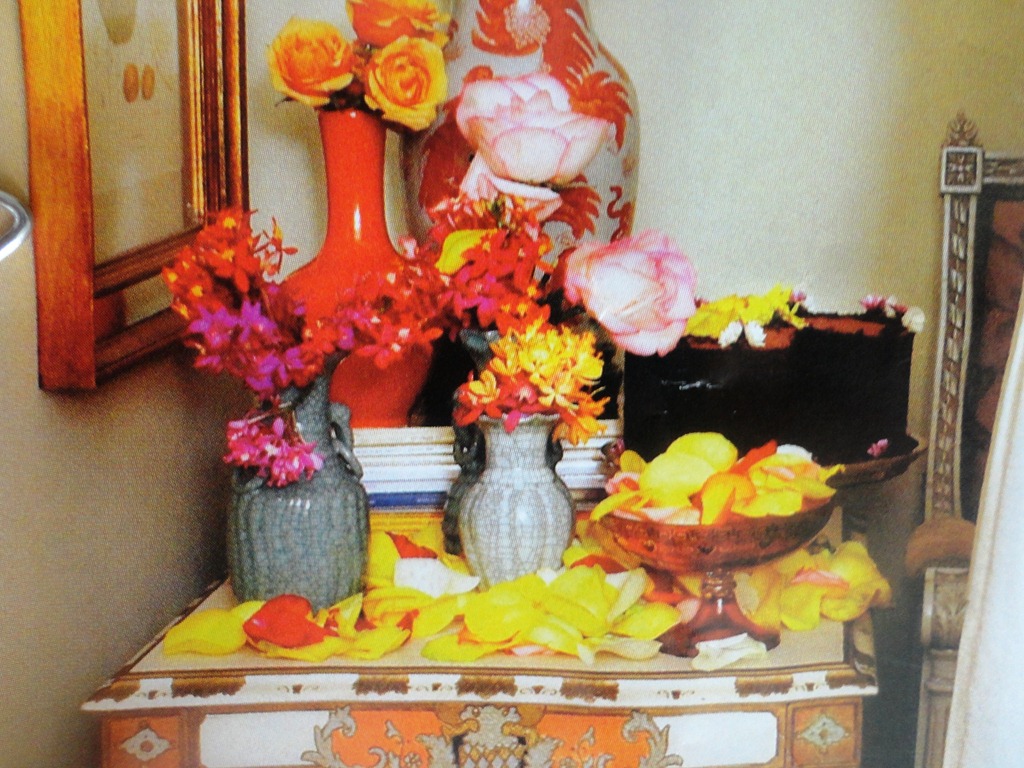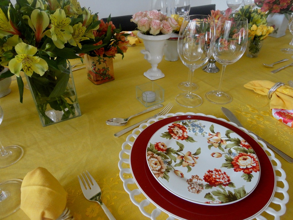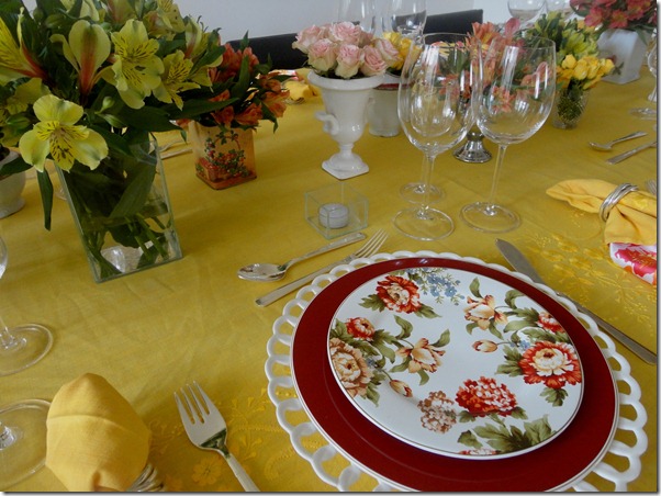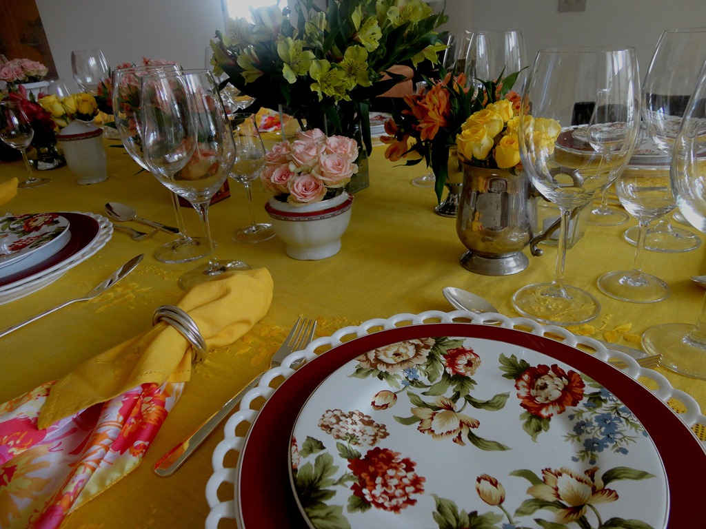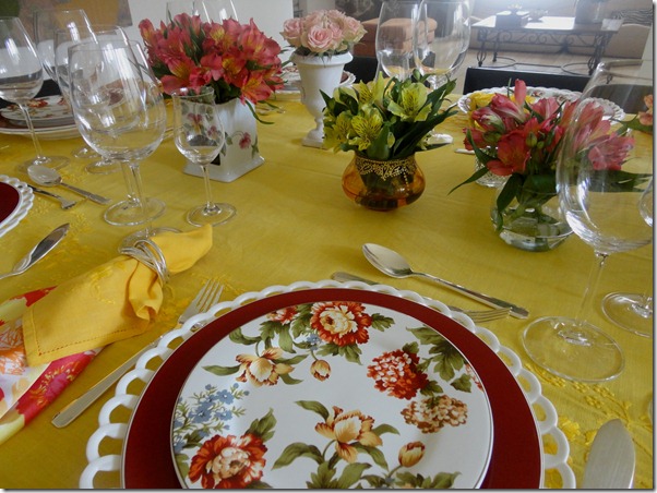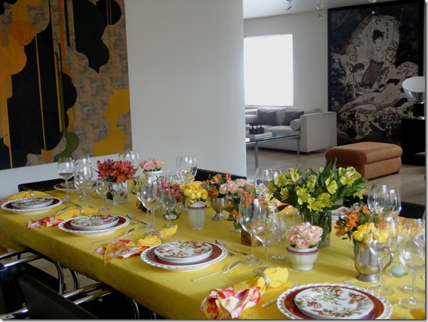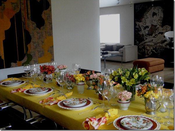 Essa imagem da VOGUE RG antiiiiga estava guardada na minha “pasta de inspirações” e resolvi reproduzir os tons na mesa, que achei muito lindos! Agrupei as flores também em mini vasos que já tinha , uma coisa bem movimentada, outra dica da VOGUE RG.