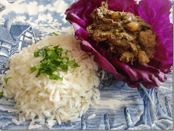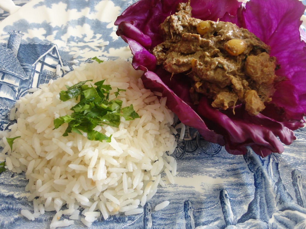 2o. PRATO – frango ao curry em cestinha de repolho roxo ( molho teryaki em molheira ) (