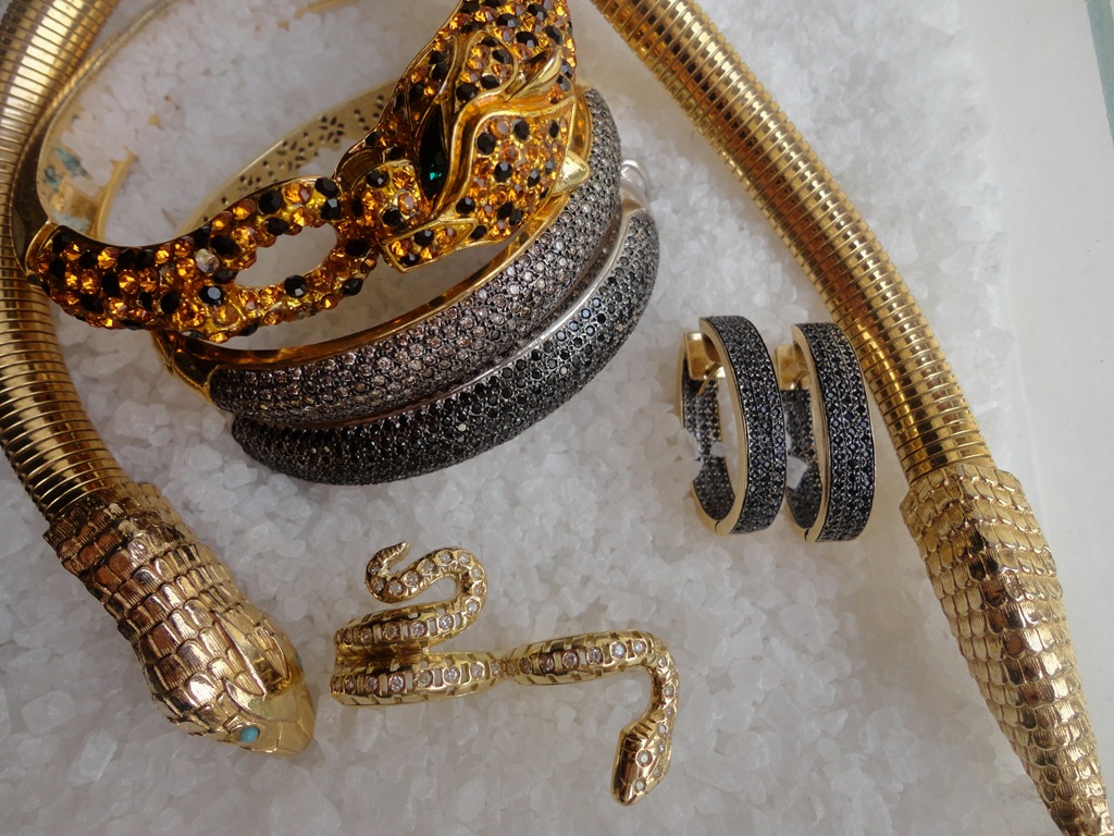 “feras” todas reunidas: cinto de cobra vintage , pulseira pantera Butler Wilson, JÓIAS PD