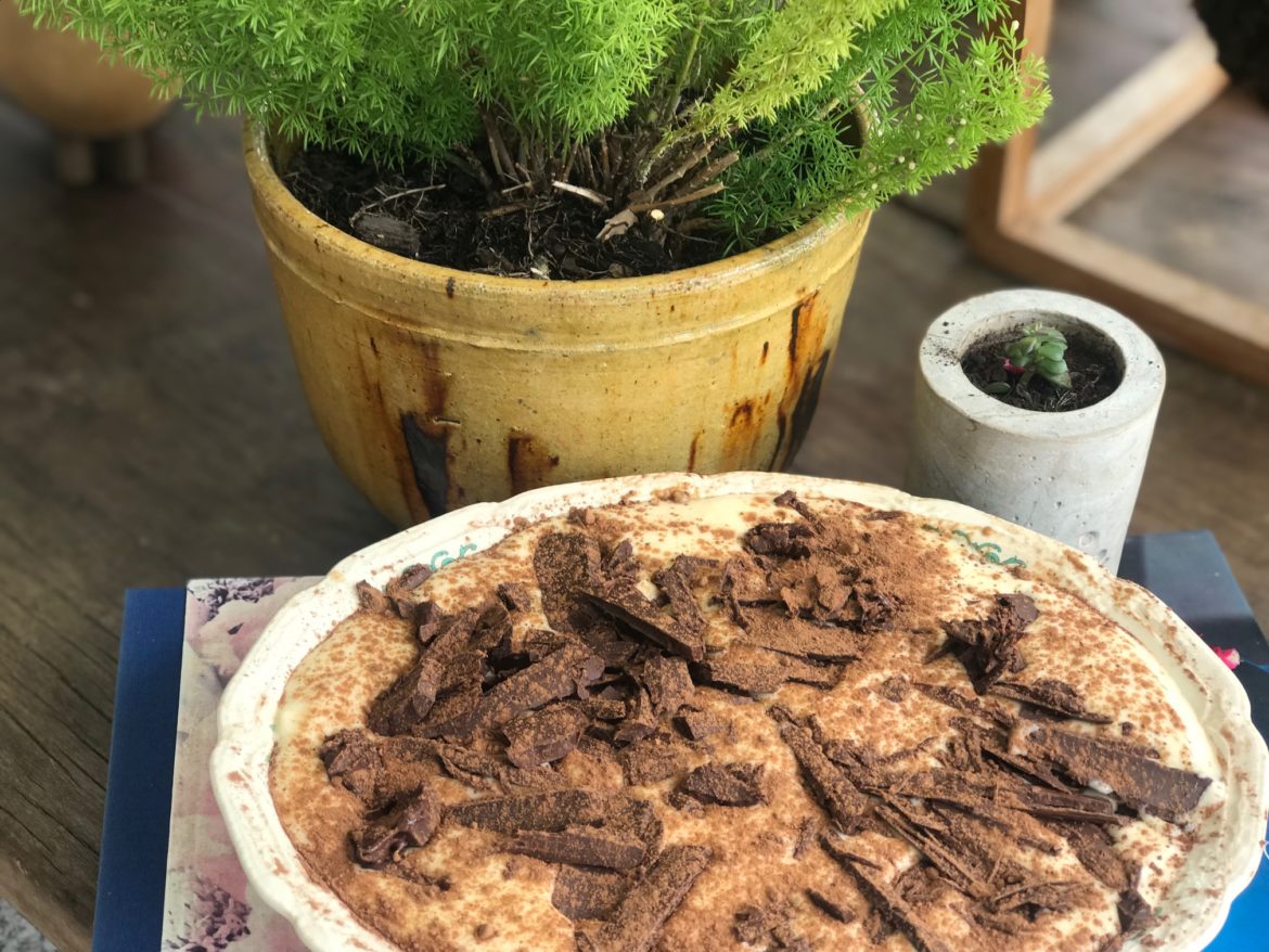 A sobremesa também já estava pronta – um TIRAMISSU – e até os pratinhos já ficam arranjados antes, pois eu não teria funcionárias à noite. Mais prático que isso, só dois disso! Rsrs