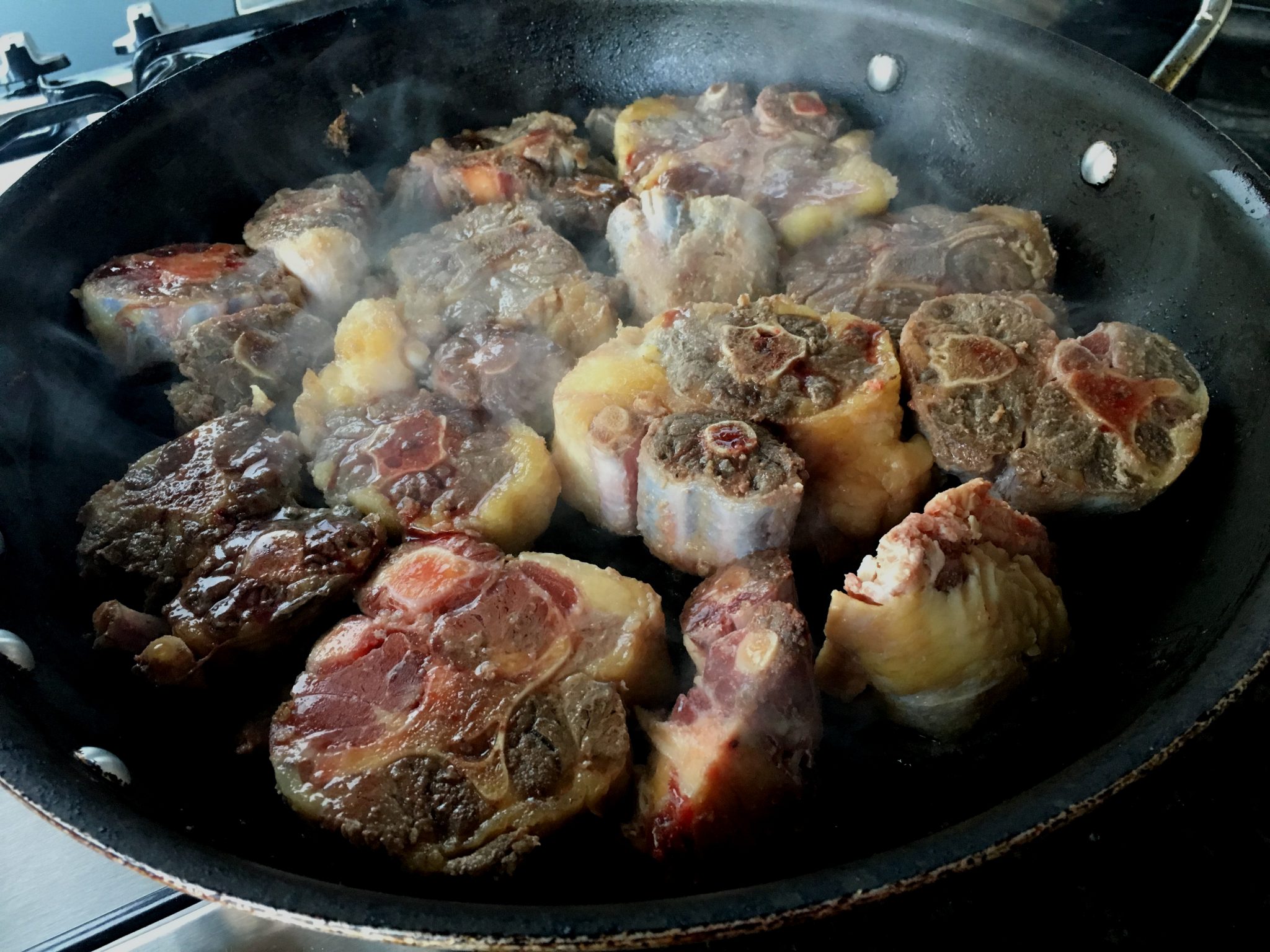 PREPARO : Em uma frigideira bem quente, adicione óleo e sele a rabada até ficar bem dourada.