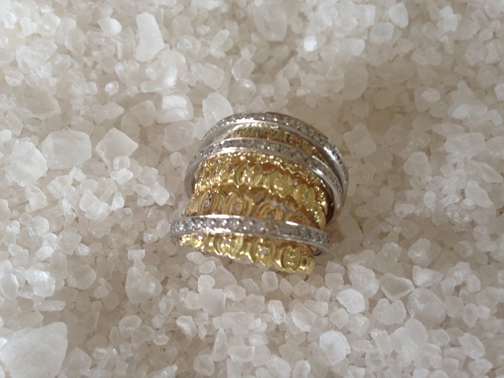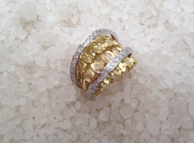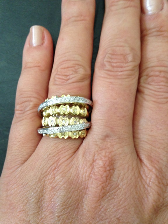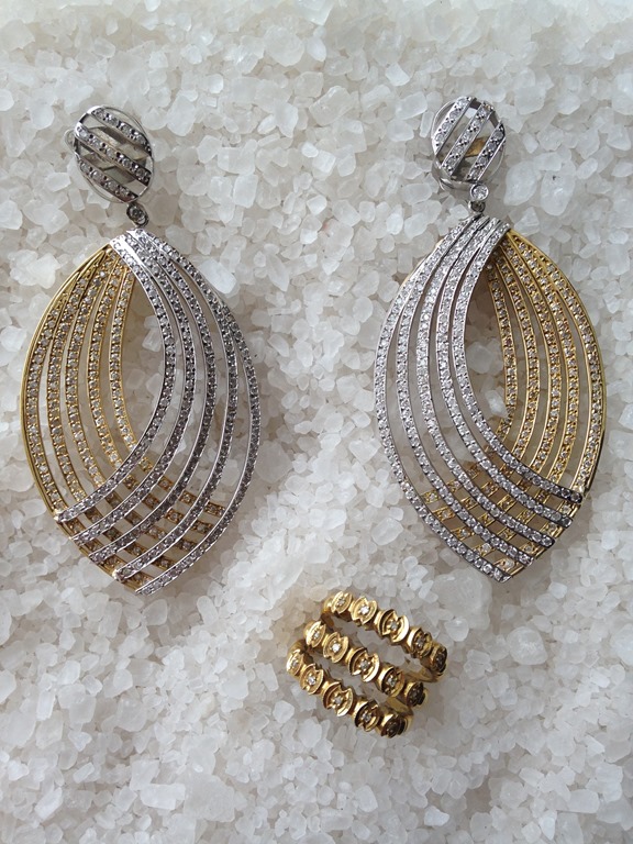 Cliente querida comprou esse brinco JÓIAS PD em 2 tons de ouro e brilhantes e queria um anel para fazer conjunto. Só que ela tem várias peças “ paradas “ e sem uso em casa , e me mandou um anel para ver se “ dava rock “.