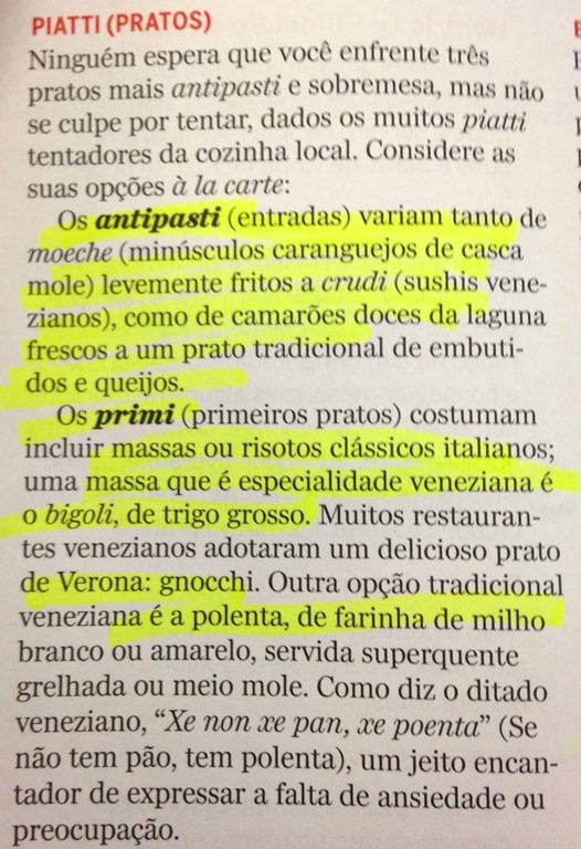 A SEQUÊNCIA VENEZIANA CORRETA DE PRATOS