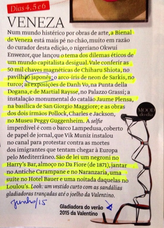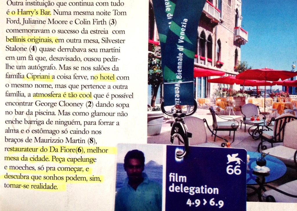 Eu planejei  ir no concorrido DA FIORE , considerado um dos melhores na cidade. Consegui a famosa ( e única! ) mesa na varanda , porém infelizmente não consegui ir, devido aos compromissos com a Bienal e o artista que estávamos acompanhando. Esse vai ficar para uma próxima.