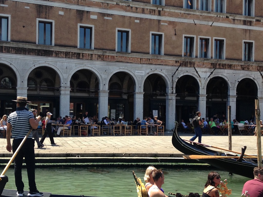 A ponte sempre fica lotada de gente por ter comércio de ambos os lados, bem como por ser cenário típico de fotos tirando fotos. Da mesma forma, na beira do Grande Canal e  no entorno do mercado , ficam lotados os vários restaurantes lado a lado , que oferecem todo o tipo de comida a preços bem convidativos! Todo mundo vai!