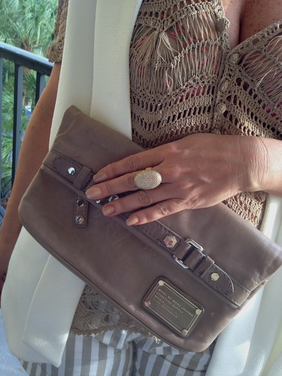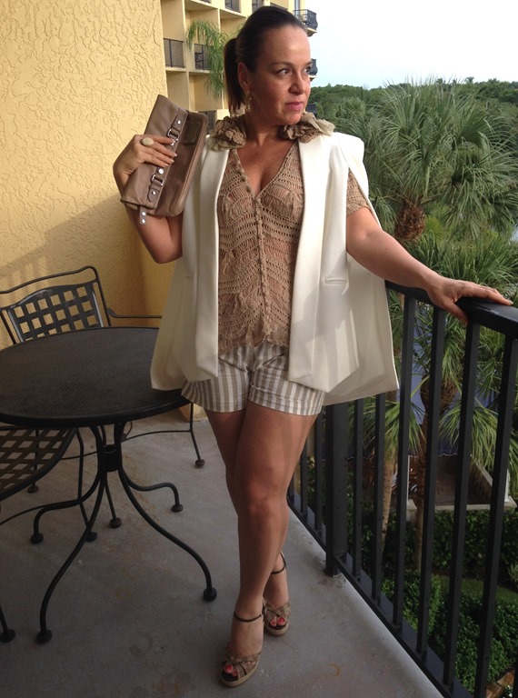 top CLÔ – shorts TAHARI – capa MARES – clutch MARC JACOBS – espadrille GUCCI