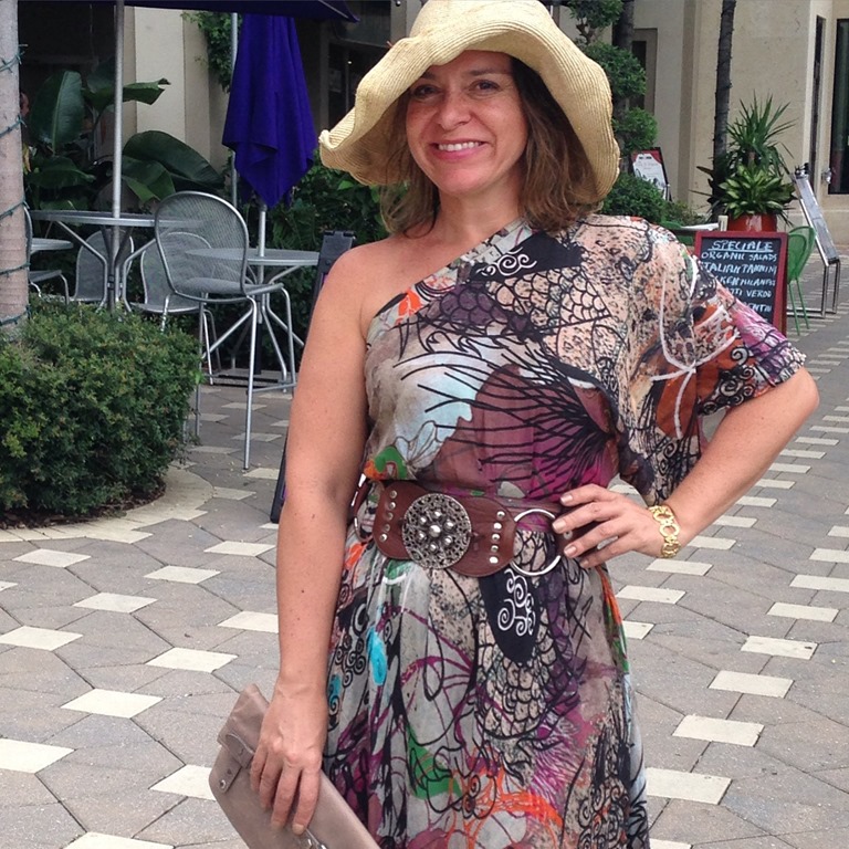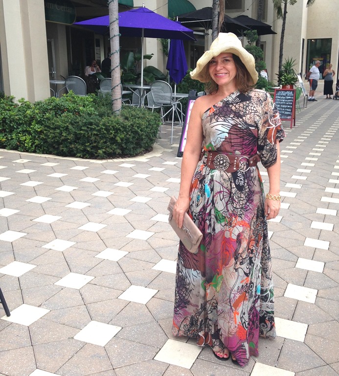 look fim de tarde – vestidão TAHARI – flats PRADA – clutch MARC JACOBS – cintão acervo- chapéu VIX ( usei na praia e no solão do final do dia ) – pulseira JÓIAS PD