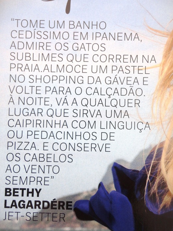 E MAIS OUTRAS DICAS DE CARIOCAS VERY CHIC , PUBLICADAS na VOGUE BRASIL