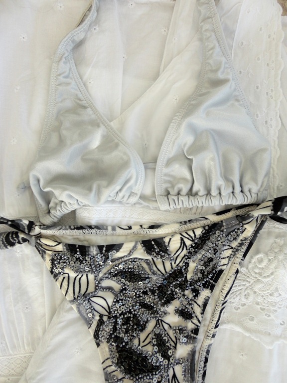 Uma clutch de bambú de Glorinha Paranaguá, um biquíni da Vix e uma cachaça para fazer sua própria caipirinha em casa.