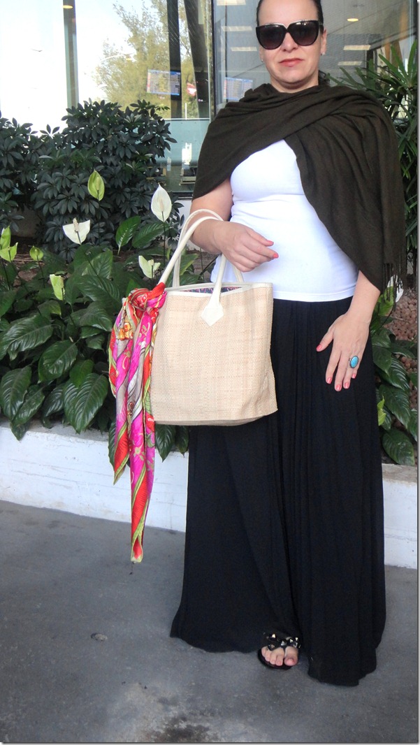 … e a mesma saia,o mesmo lenço,a mesma bolsa(de praia!!!),foram o look aeroporto
