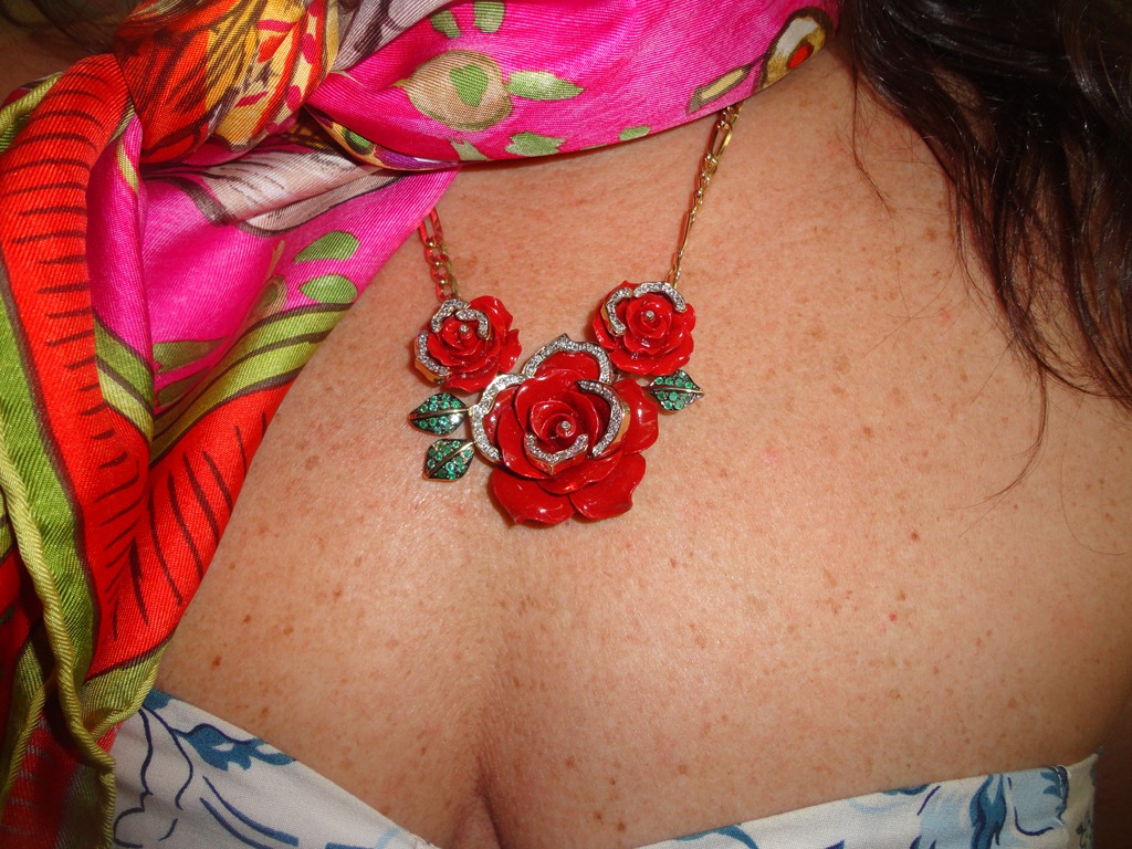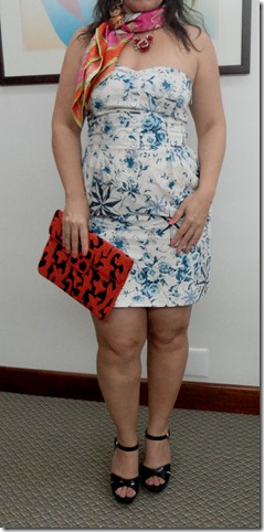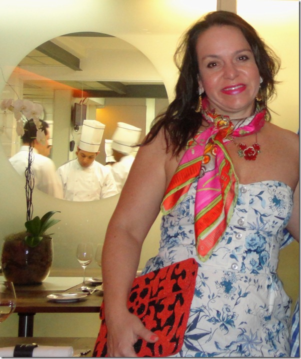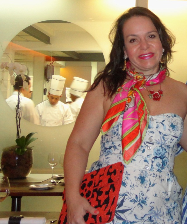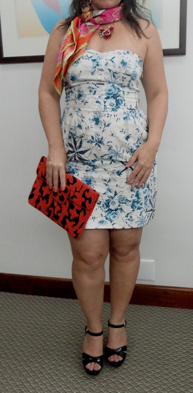 vestido FARM – sandália FEGATA – clutch LE LIS – lenço HERMÈS – JÓIAS PATRICIA DIAS
