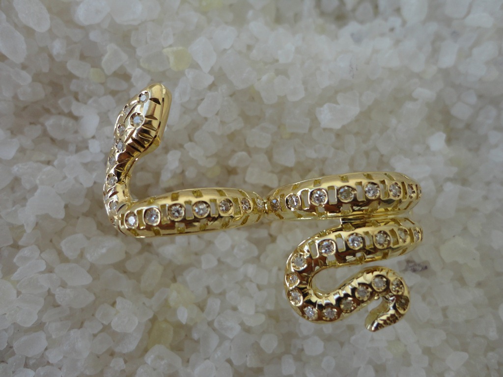 anel duplo cobra em ouro e brilhantes ——– 10 x 350,00 = 3500,00