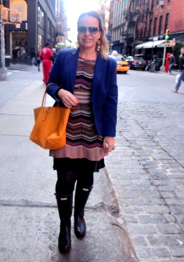vestido M MISSONI – blaser H7M – bag FERRAGAMO – botas HUNTER – oculos CARRERA