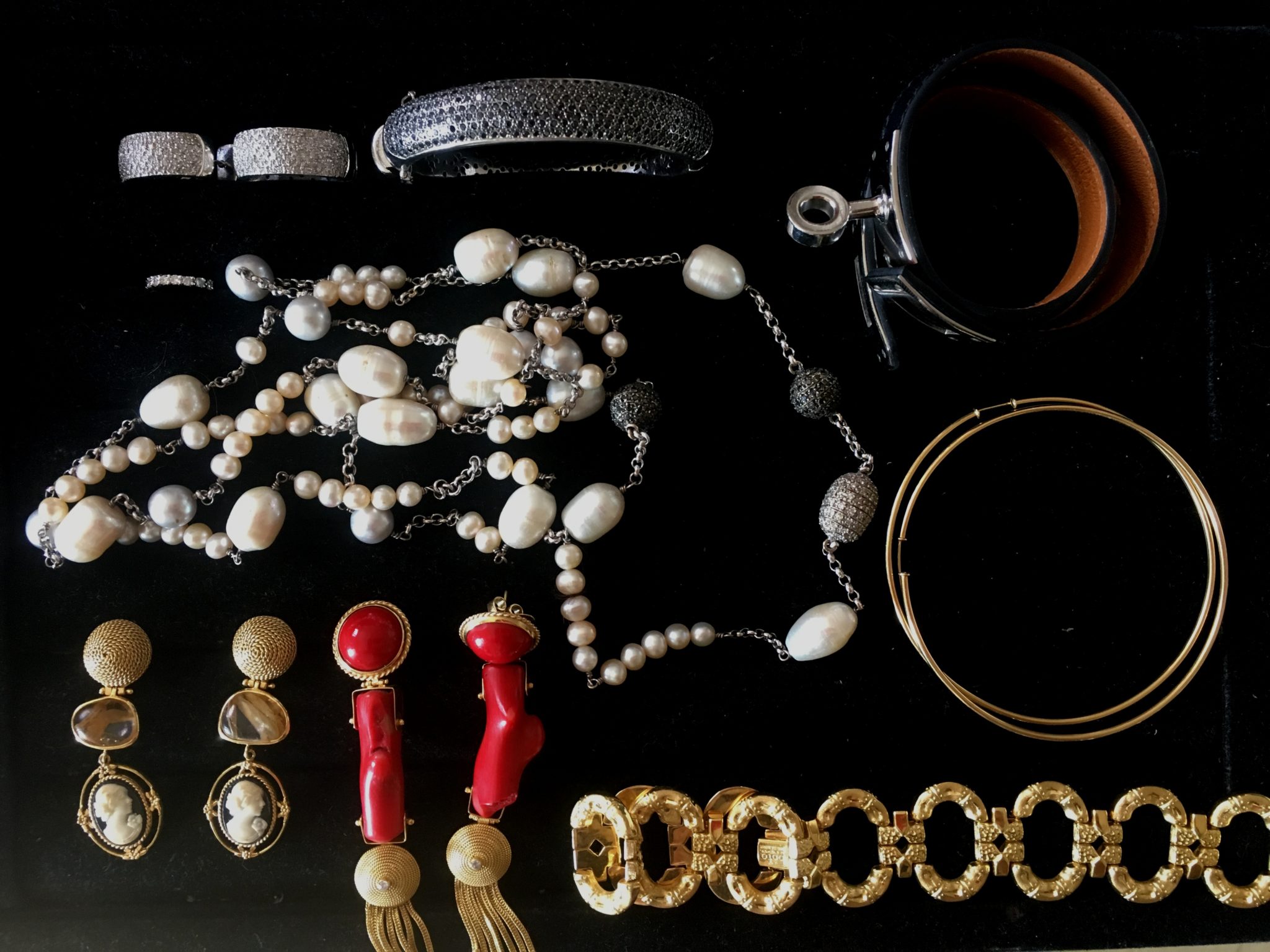 Essas foram as joias que comporiam alguns poucos looks bem coloridos nesses 4 dias, pois dessa vez abusei do PB. Como sempre, levo apenas 2 bolsas: uma grande para o dia e uma pequena para a noite ( que funcionou também para o dia ). Duas sandálias pretas apenas: uma rasteira e uma com salto baixo bem grosso.
