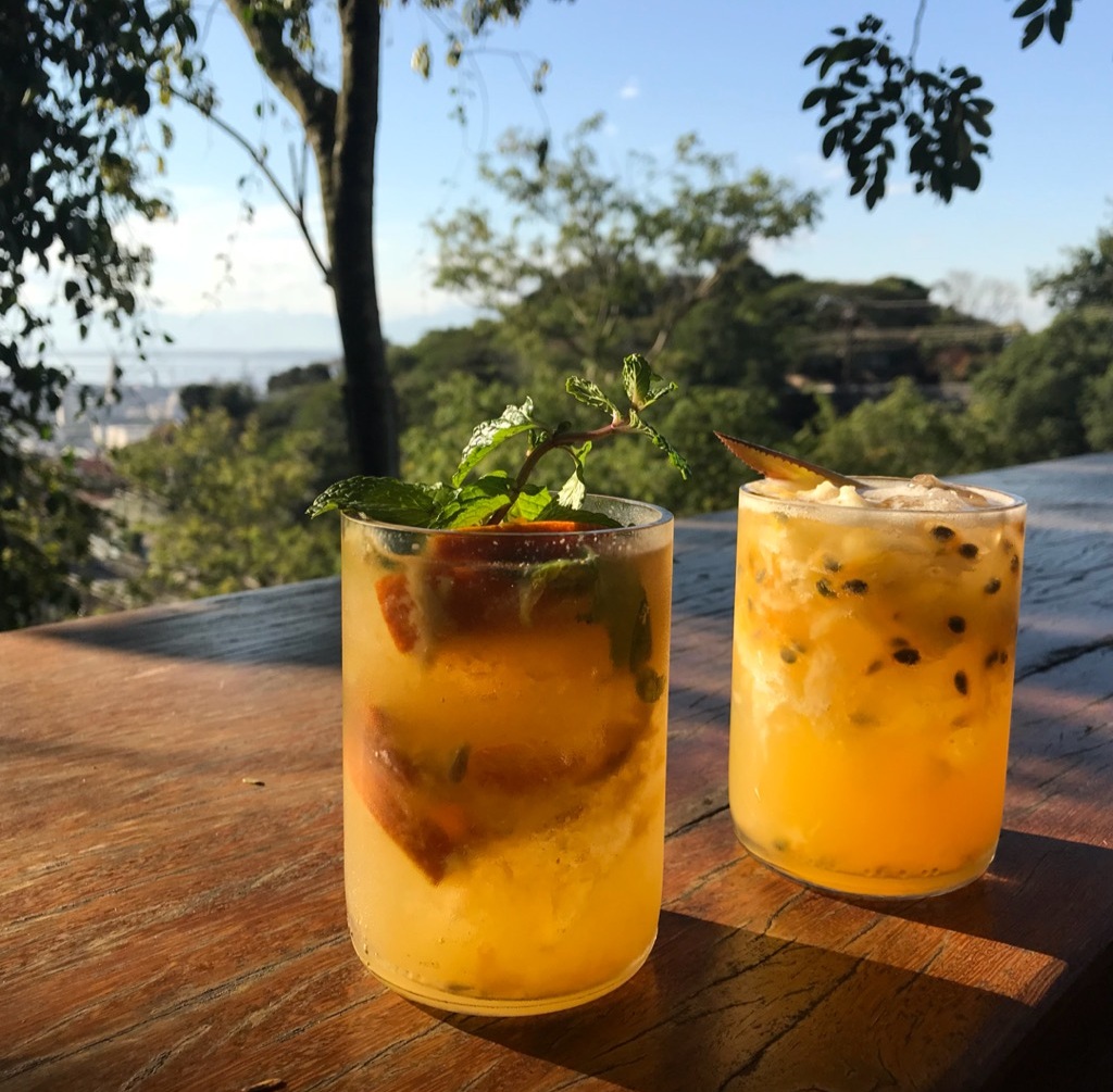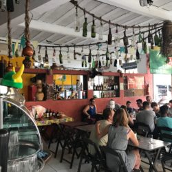 Embaixo, não só os botecos populares enfileirados servem a típica comida carioca/brasileira, como também ficam lotados. Entretanto, preferimos um lugar mais tranquilo, com uma vista linda e então  subimos tudo de volta de taxi até o APRAZÍVEL .