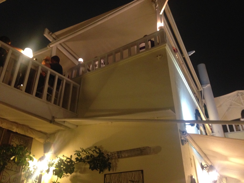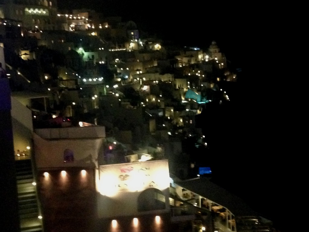 À noite, em FIRA , rola o mesmo esquema de Mykonos: As pessoas vão no fim de tarde que é mais fresco, andam pelo comércio, reservam restaurante com vista para o por-do-sol etc etc . Eu , como novamente estava com o por-do-sol dentro do quarto.. rsrsr… fui jantar mais tarde. Eu só fui a um restaurante em FIRA , o ARGO, muito bom por sinal. Eles servem vários pratos típcos da culinária grega ( coelho, porco no vinho, etc etc e mais os frutos do mar e peixes e saladas de sempre ).