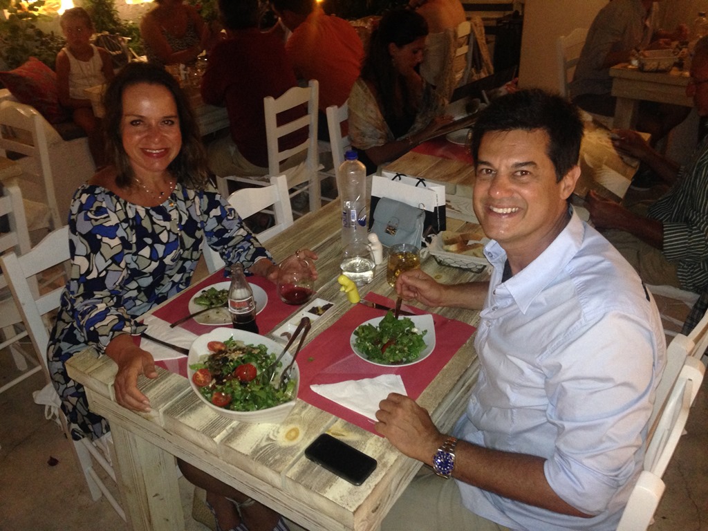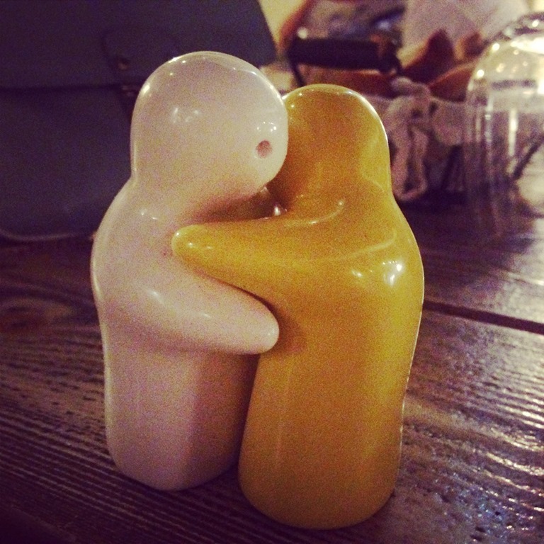 Como eu já havia postado no instagran, dizem que Santorini é a ilha do amor. Nesse restaurante, até o saleiro e o pimenteiro estão apaixonados …. kkkk