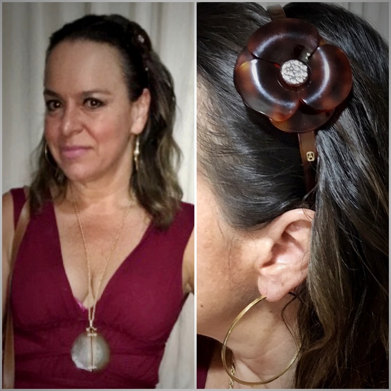 Mas … voltando ao shopping e às suas lindas lojas : Já faz tempo que ando de olho nos acessórios de cabelo ALEXANDRE DE PARIS – já até falei aqui no blog. Tem loja no Cidade Jardim e no Iguatemi. Dessa vez, empolguei e comprei minha 1a. tiara da grife, e … claaaro que já saí com ela à noite, né? Não é charmoso?