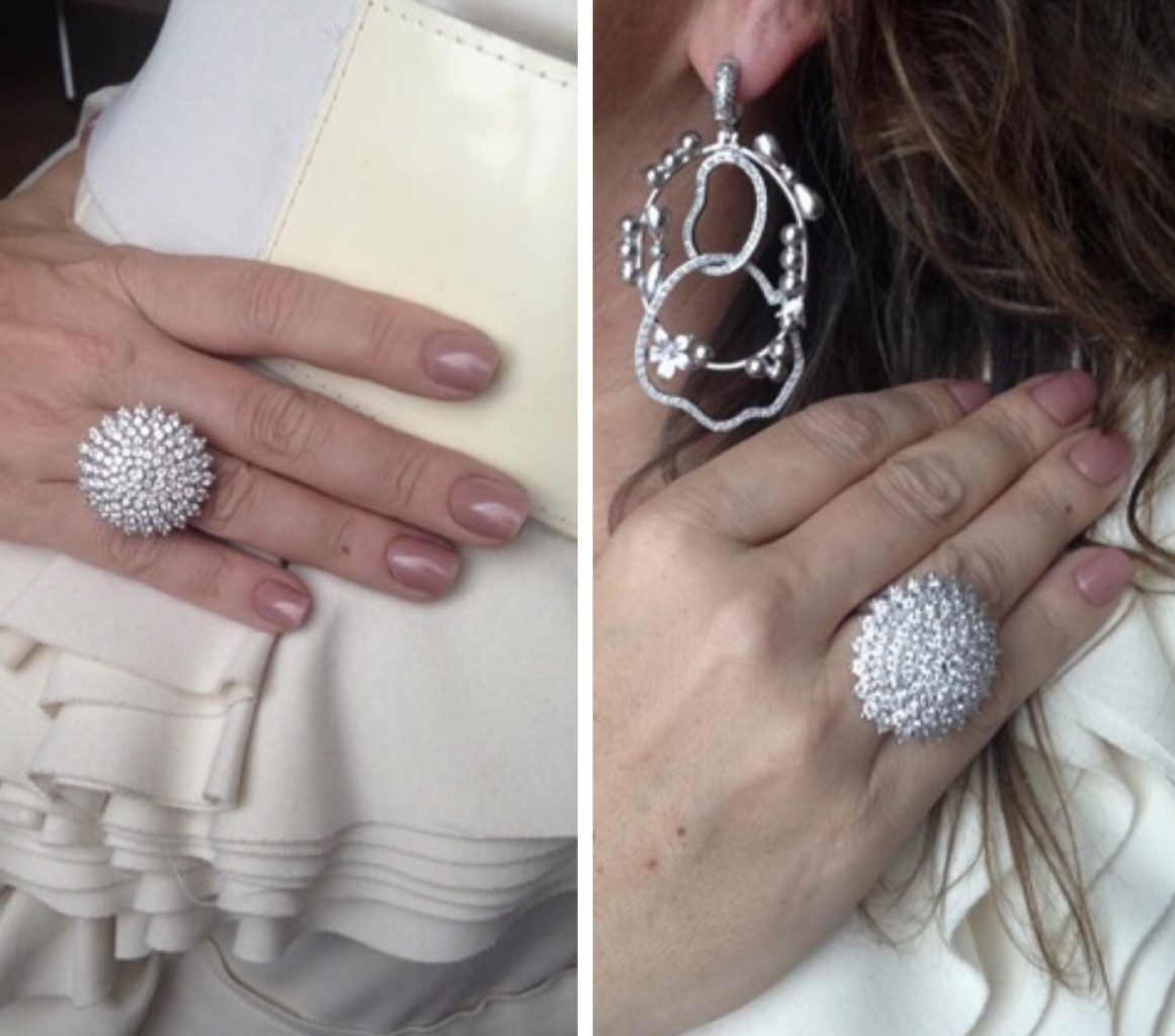 Combinei os babados do vestido com JÓIAS PD em ouro branco e brilhantes.