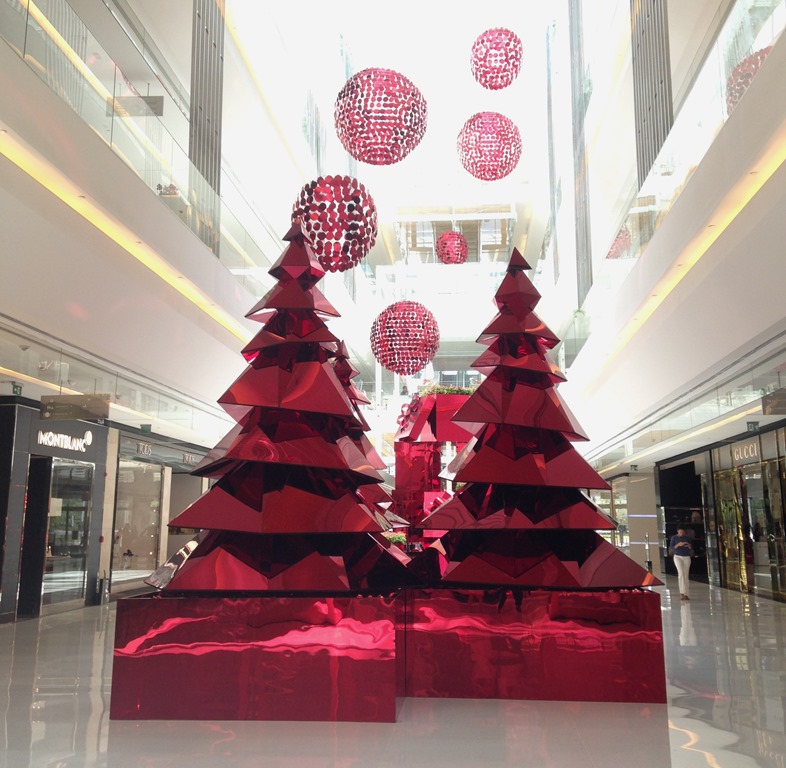 A decoração do shopping JK IGUATEMI está chiquérrima e foi feita por Jeff Leatham, o florista oficial do George V em Paris, assim como da familia Kardashian e de outras celebrities worldwide. Ele projetou estruturas gigantes vermelhas no shopping e luzes vermelhas também.