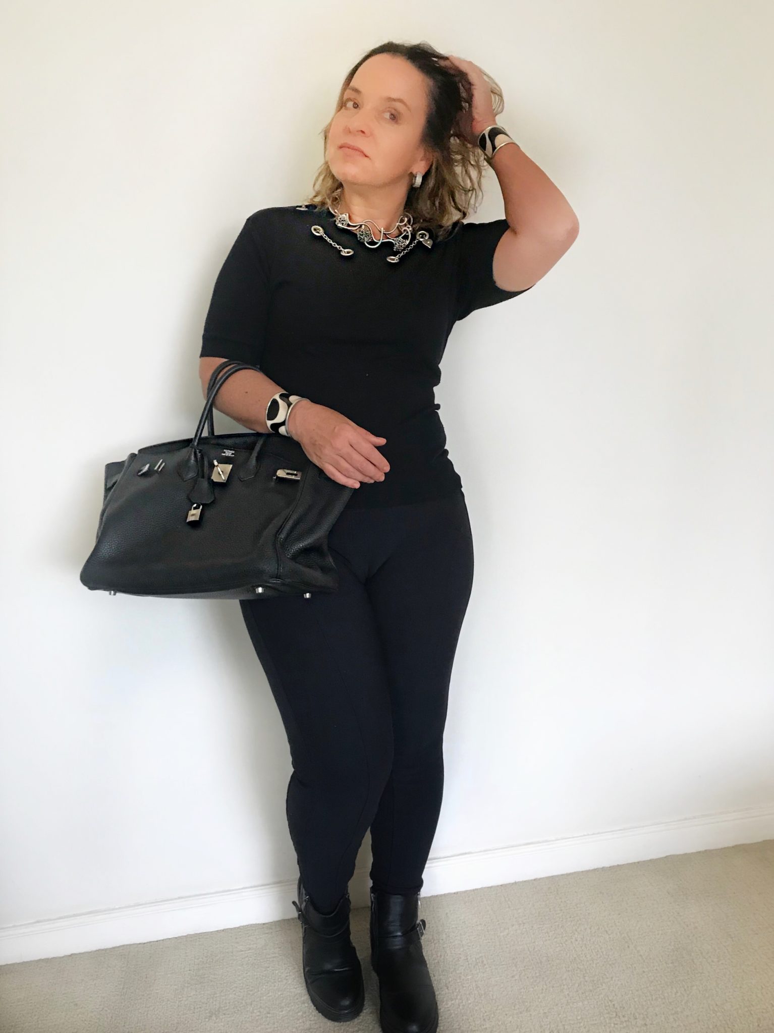 Nesse caso, um look all black 100% “genérico” ganha pontos com acessórios chiques e joias.