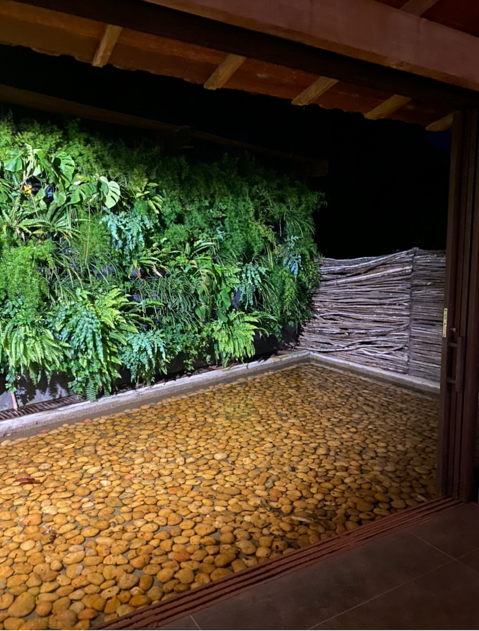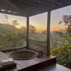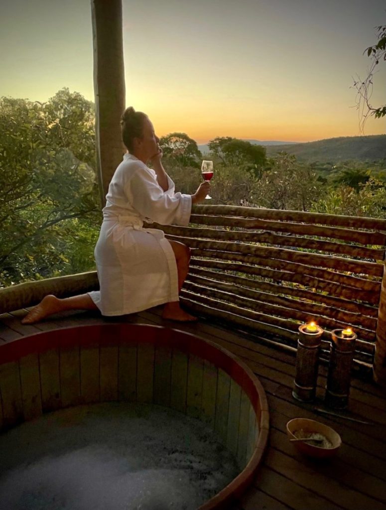 Escolhemos uma suíte bem reservada , com essa vista linda, totalmente inserida na vegetação e ainda assim também com essa bênção de ter um ofurô só para nós. De tardinha, é mágico, assim como o silêncio da noite chegando.