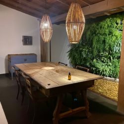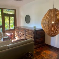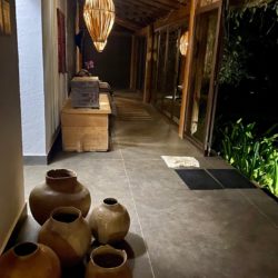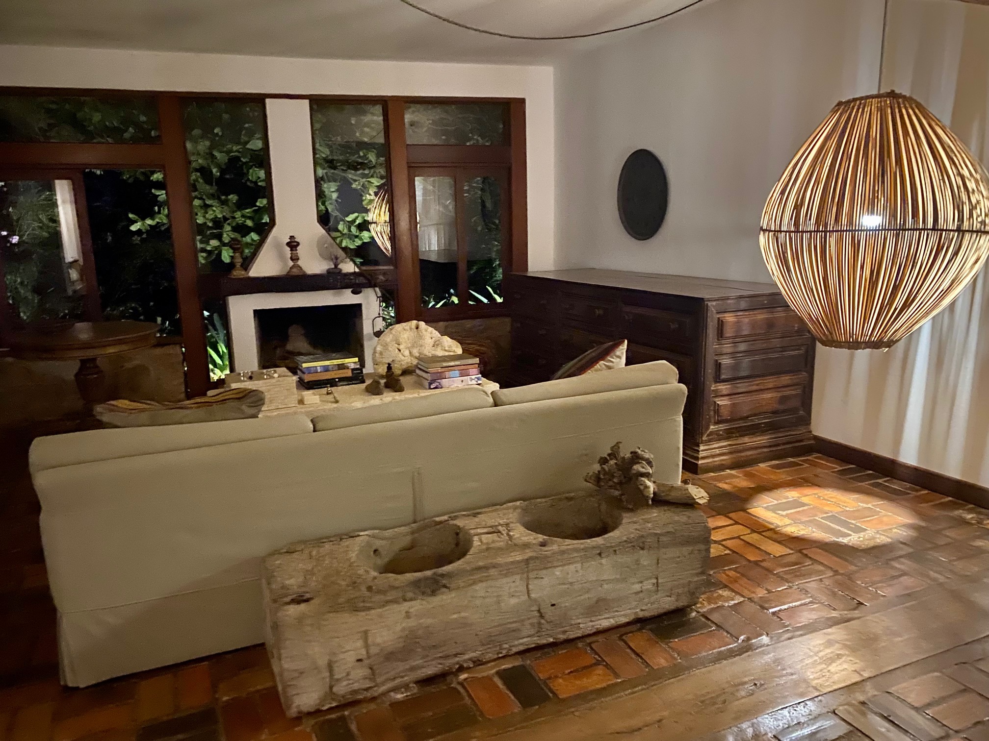O decor fica ainda mais valorizados com os lustres gigantes de palha acesos estrategicamente em todos os ambientes.