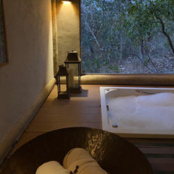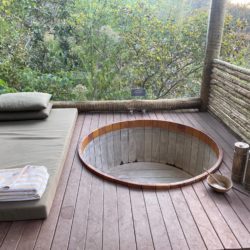 Além de desfrutar das massagens e tratamentos, você ainda pode usufruir de uma banho aromático na jacuzzi virada para a vegetação.