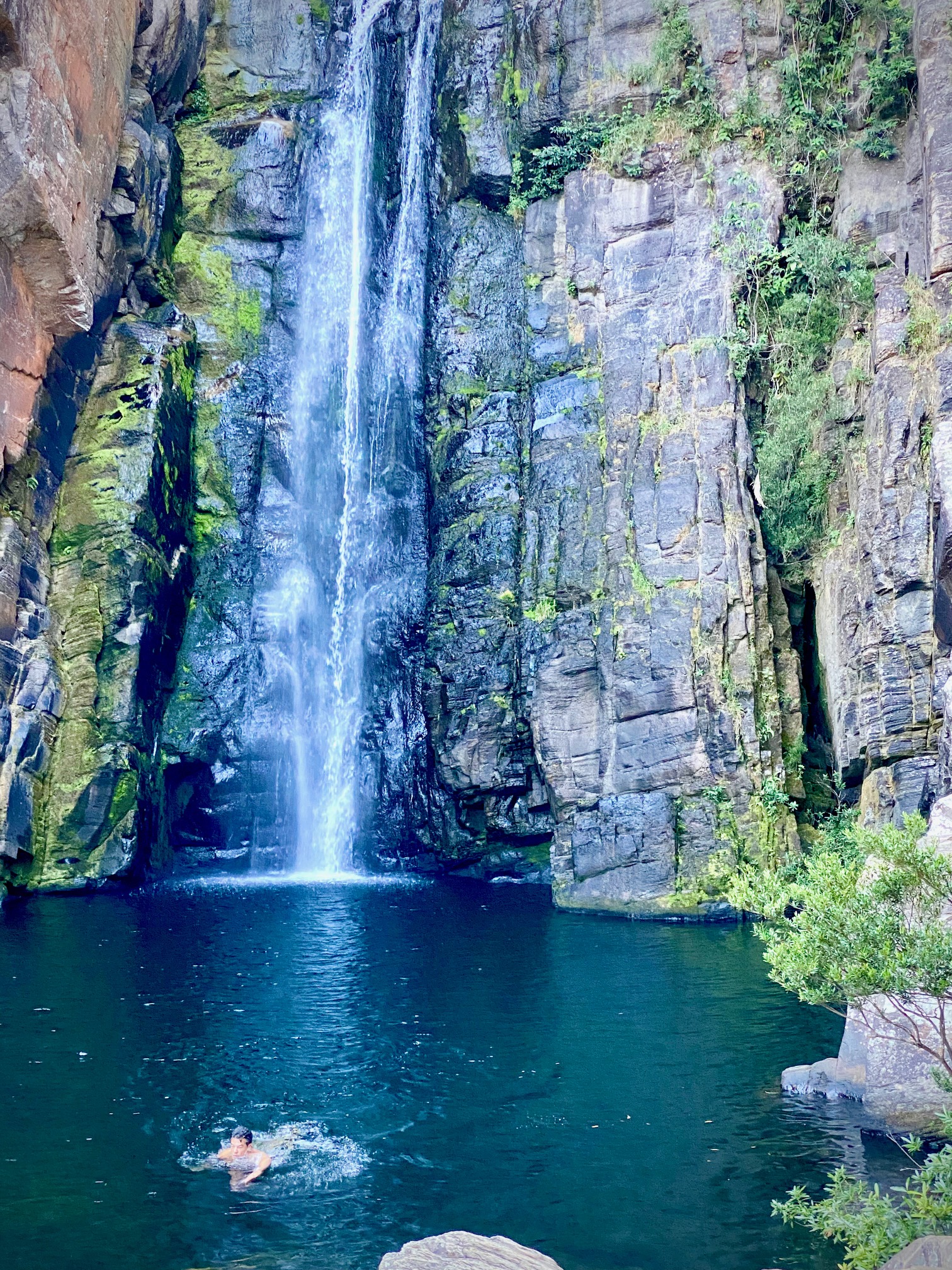 Fomos nessa 1a. vez nas 2 mais conhecidas, mas por ser dia de semana, absolutamente vazias. A chegada à Cachoeira Véu da Noiva é totalmente pensada para facilitar a vida do turista sendo recomendada, nesse sentido, inclusive, para crianças. Trilhas com calçamento, bem como corrimões, e essa represa de água natural com banheiros e cantina para os visitantes, garantem um programa seguro e “possível” para todas as idades.