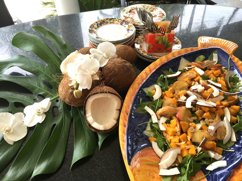 DECOR: Vi esse arranjo no instagram @brasildecorar e achei que ia ficar bem bacana para esse almoço, pois a salada de entrada também levava coco.