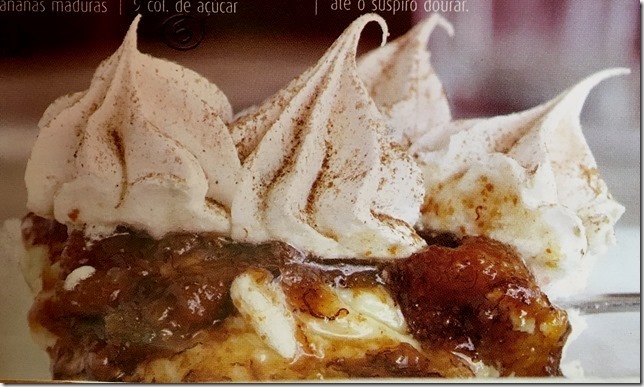 Ingredientes: 2 latas de leite condensado – 2 colheres ( sopa ) de manteiga – 6 bananas caturras maduras – 4 colheres ( sopa ) de açúcar mascavo – 6 claras em neve bem duras – 6 colheres ( sopa ) de açucar – canela em pó