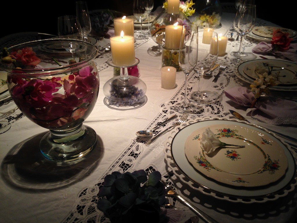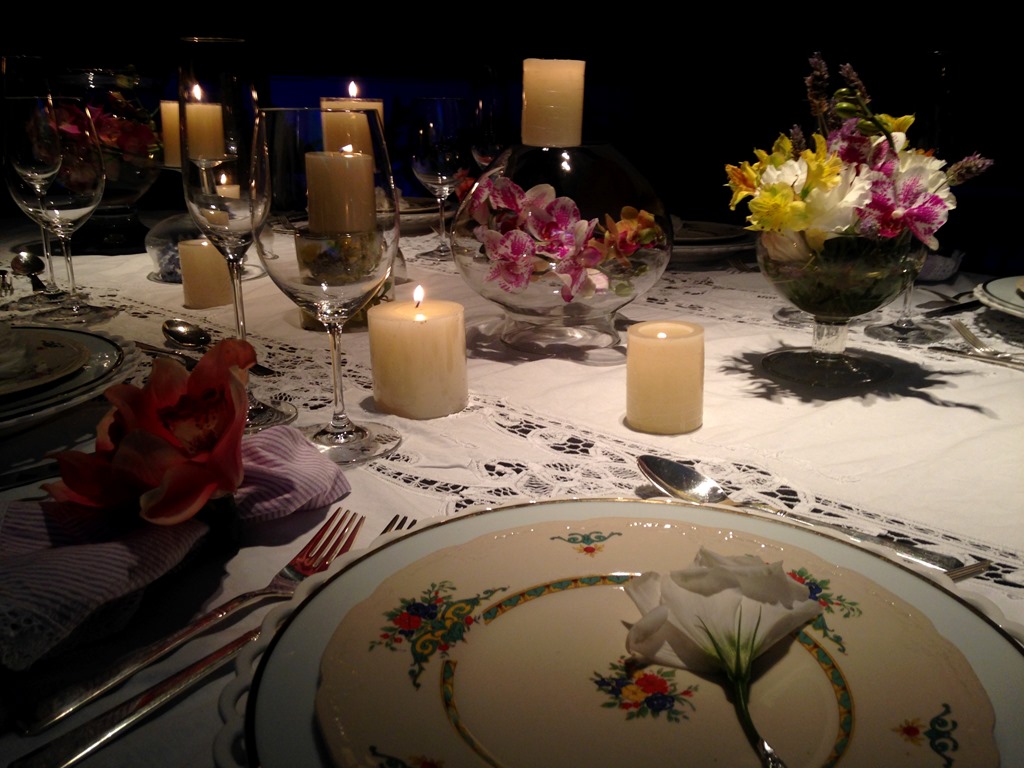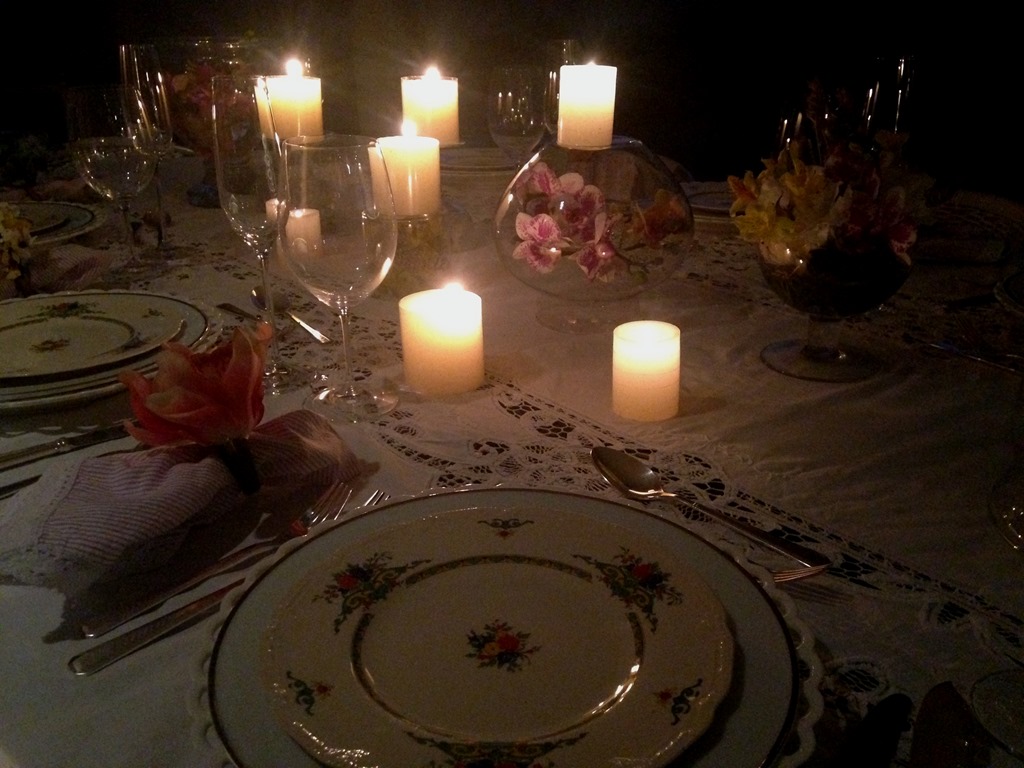 À noite, as velas deram um efeito lindo!